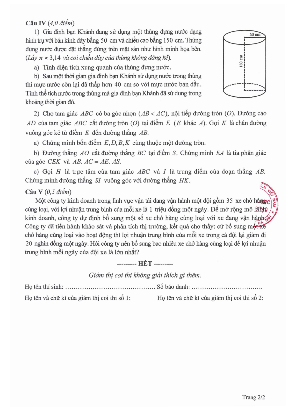 Đề tuyển sinh lớp 10 THPT môn Toán năm 2024 – 2025 sở GD&ĐT Hà Nội