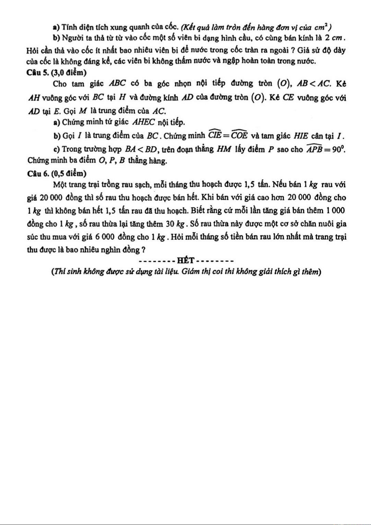 Hay O, P, B thẳng hàng Câu 6: (0,5 điểm)