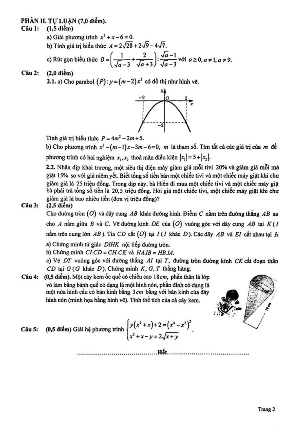 Đề tuyển sinh lớp 10 môn Toán năm 2025 – 2026 sở GD&ĐT Phú Thọ