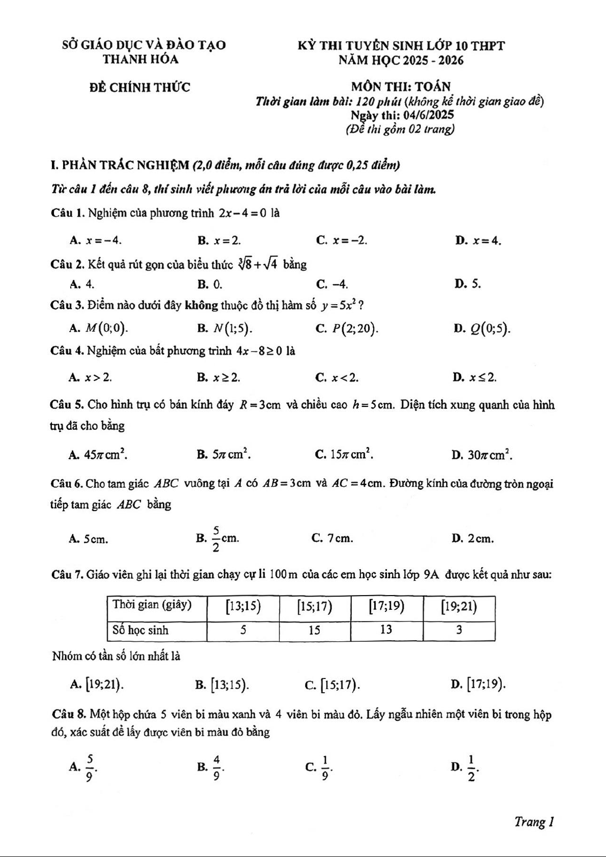 - THANH HÓA 2025-2026 ĐỀ Thi vao 10 CHÍNH THỨC LỜI GIẢI (CHUẨN HÓA)