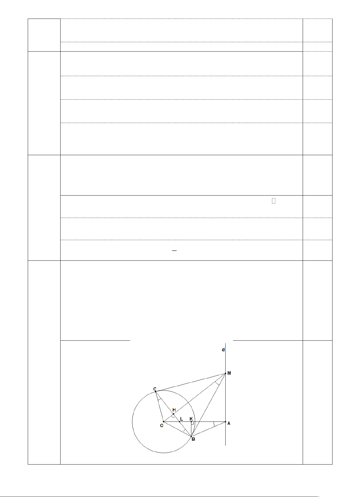 Chứng minh được các điểm M, B, O, C, A cùng thuộc đường tròn đường 0,25 kính OM. 4b.