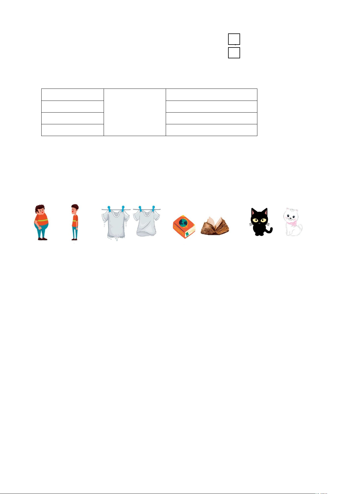 Câu 6. Dựa vào tranh, viết các cặp từ trái nghĩa tương ứng (MĐ2 - 1 điểm)