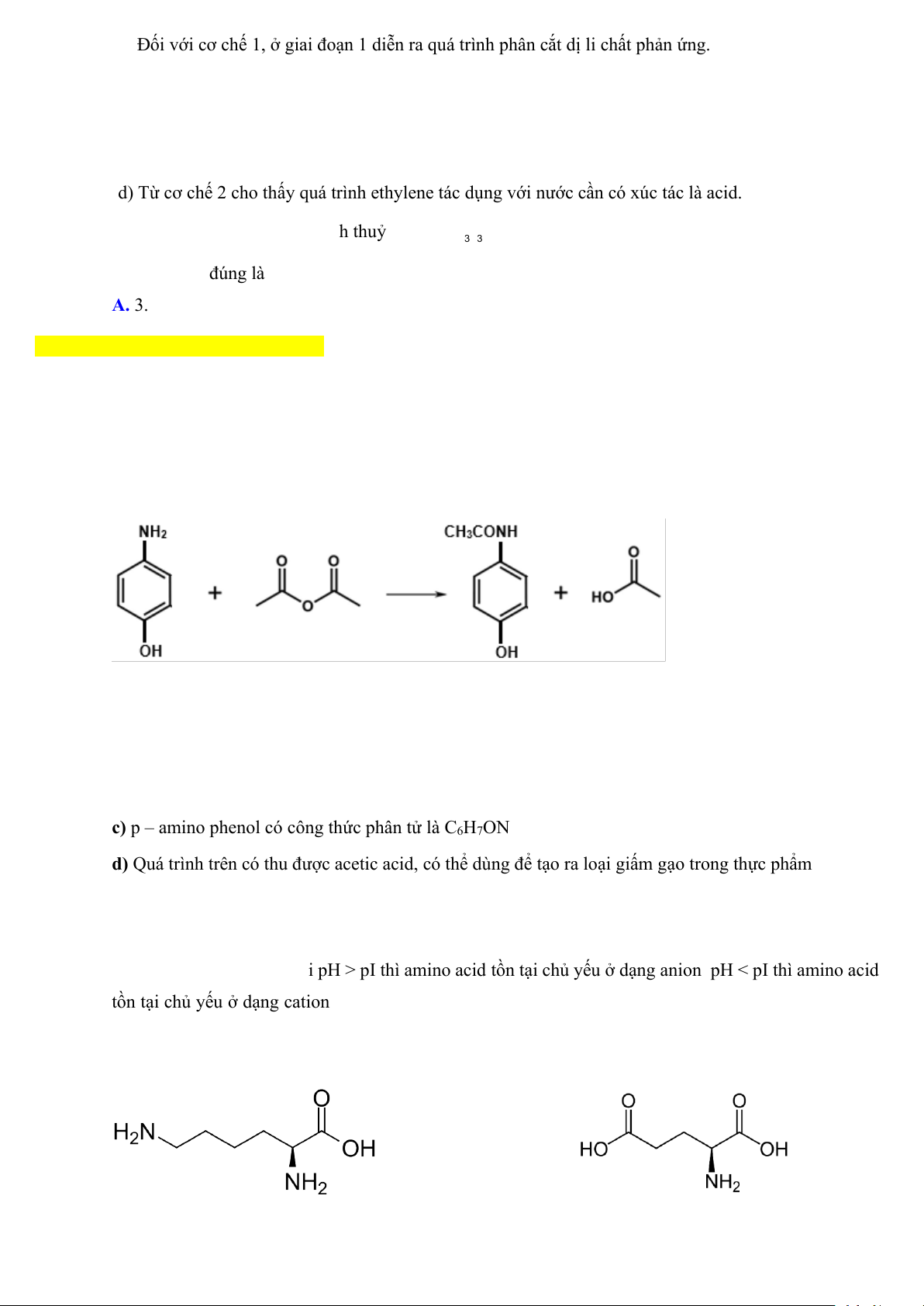 Câu 2: Trong dung dịch, dạng tồn tại của mỗi amino acid tùy thuộc vào giá trị pH của dung dịch đó. Giá trị pH