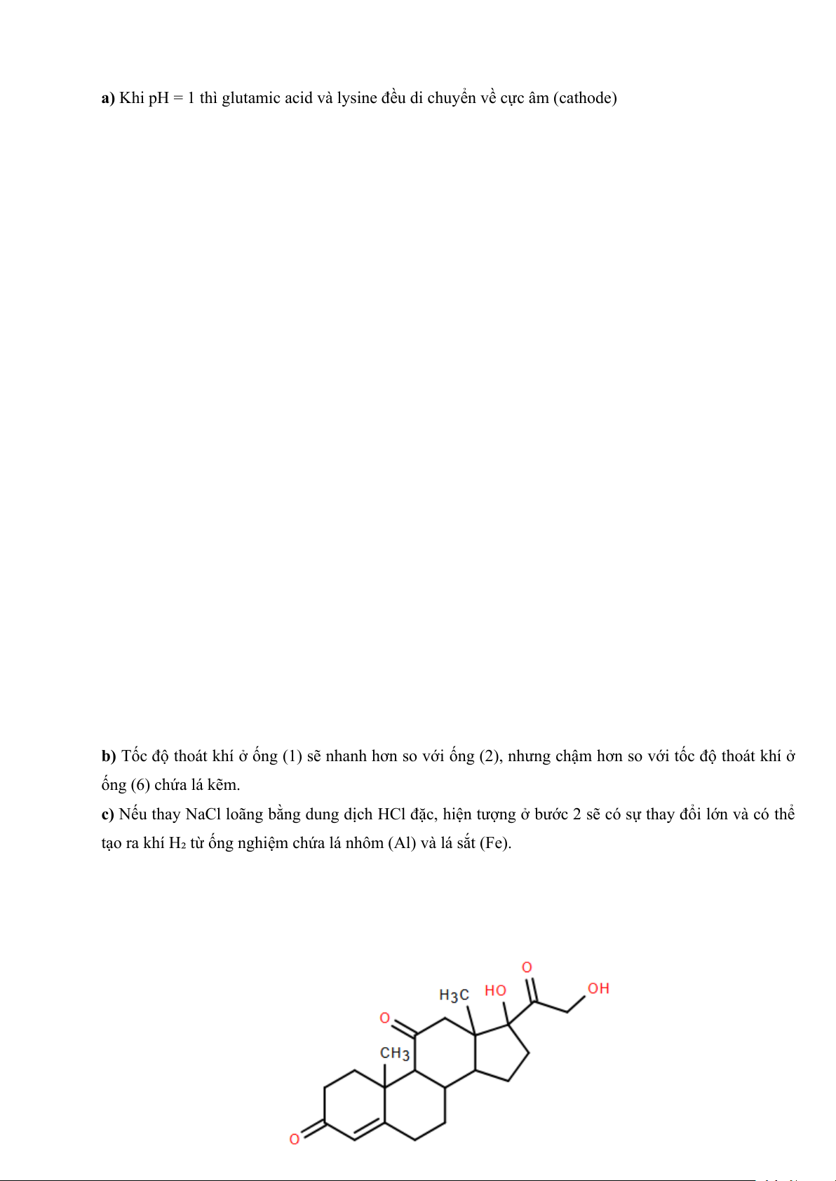 c) Khi cho cortisone tác dụng với I2 trong dung dịch NaOH, thu được kết tủa màu vàng.