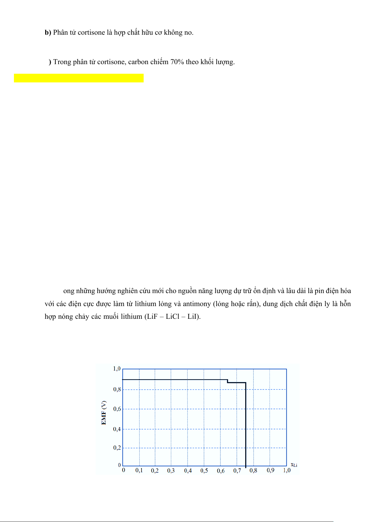 Đồ thị biểu diễn giá trị EMF theo phần mol của lithium (xLi) ở 450oC với điện cực antimony rắn như