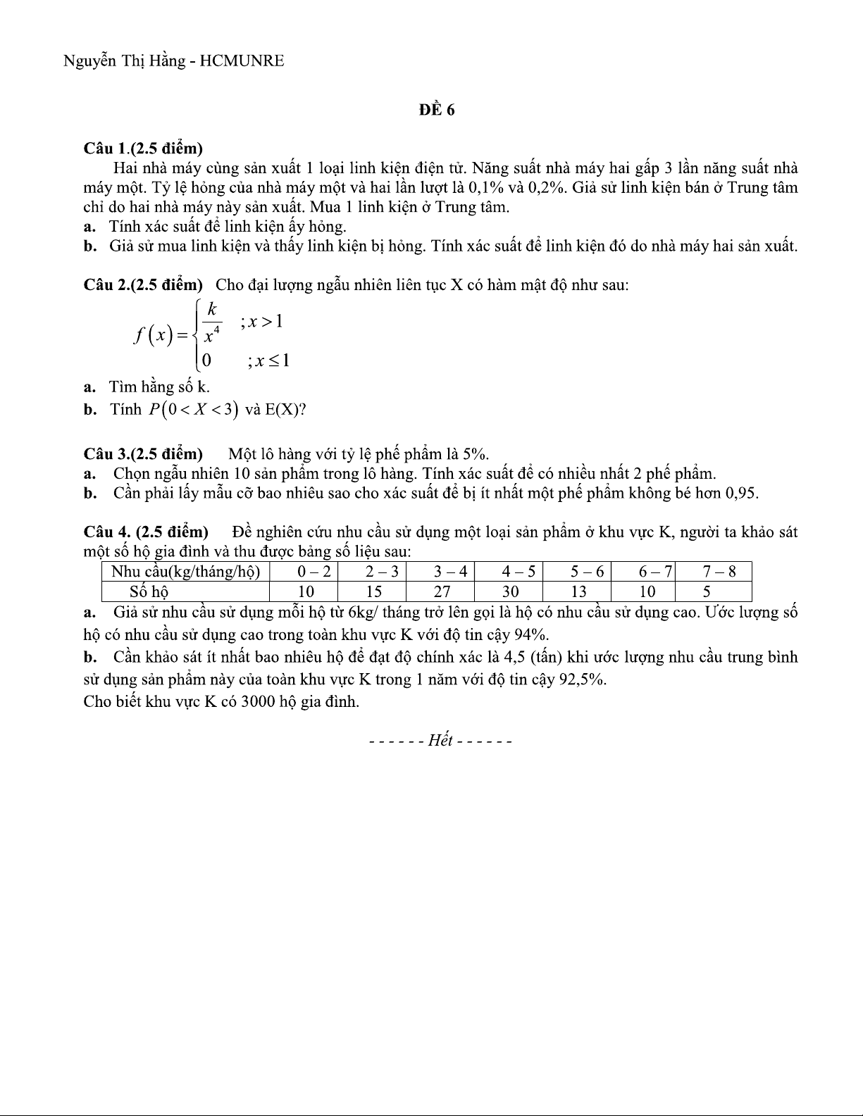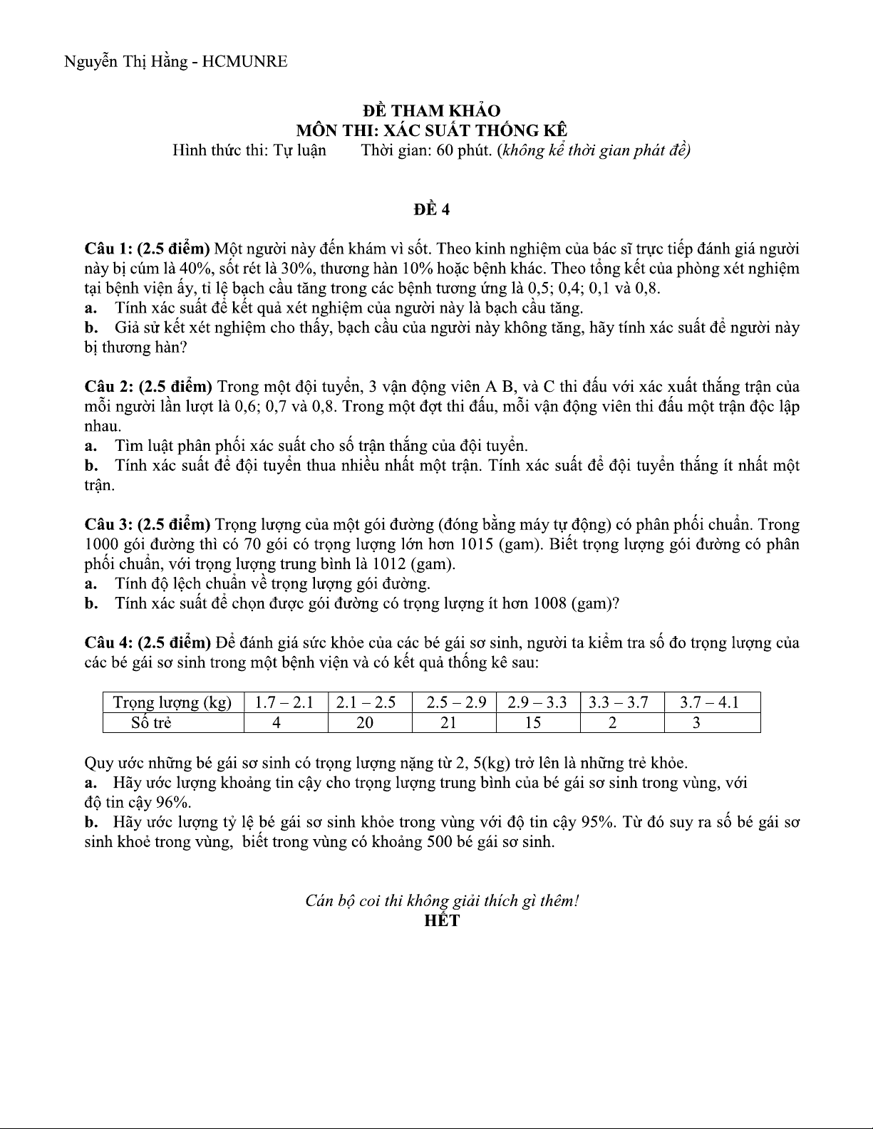 Đề xác suất thống kê. Tài liệu tổng hợp được sưu tầm. Mời các bạn tham khảo.