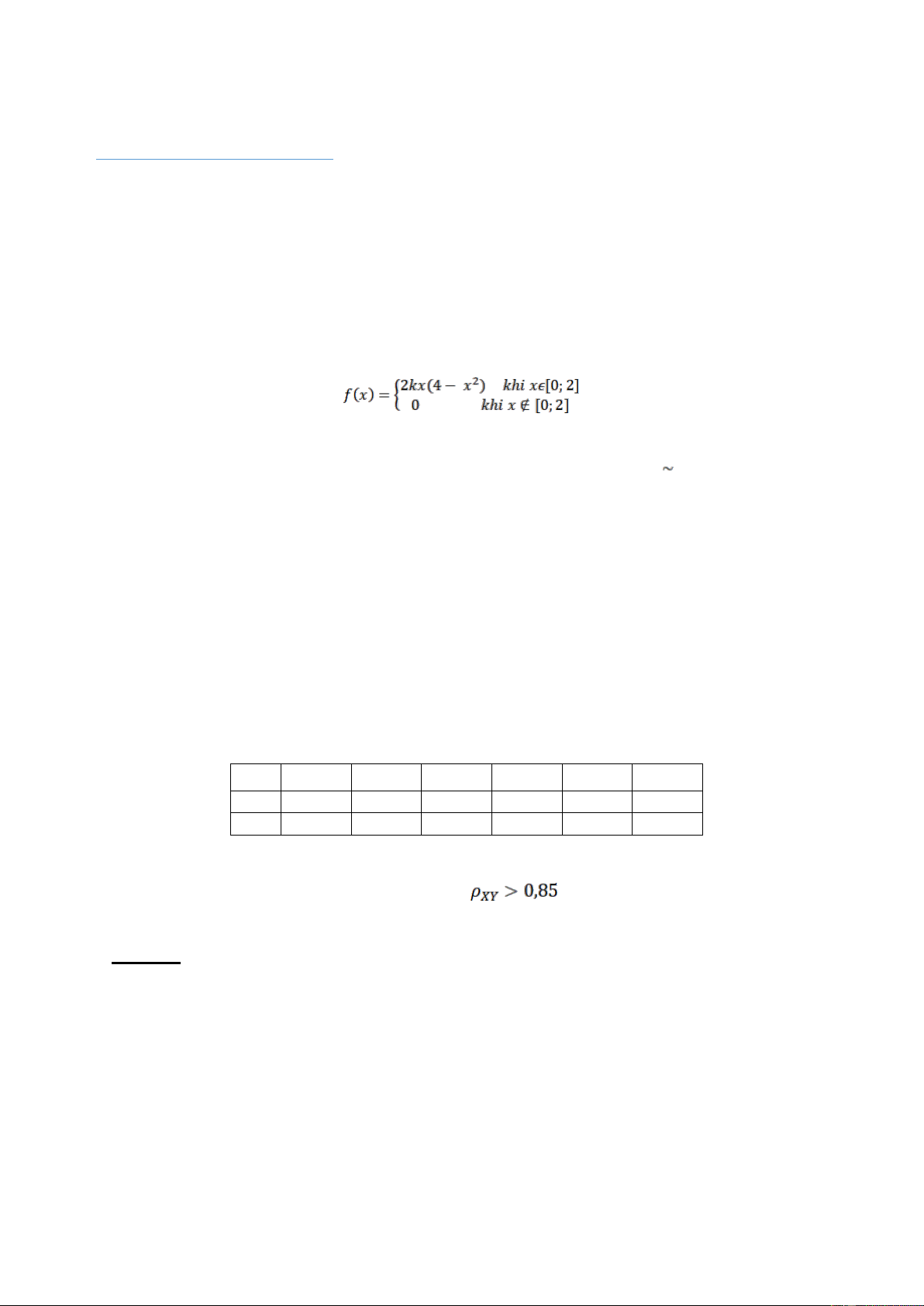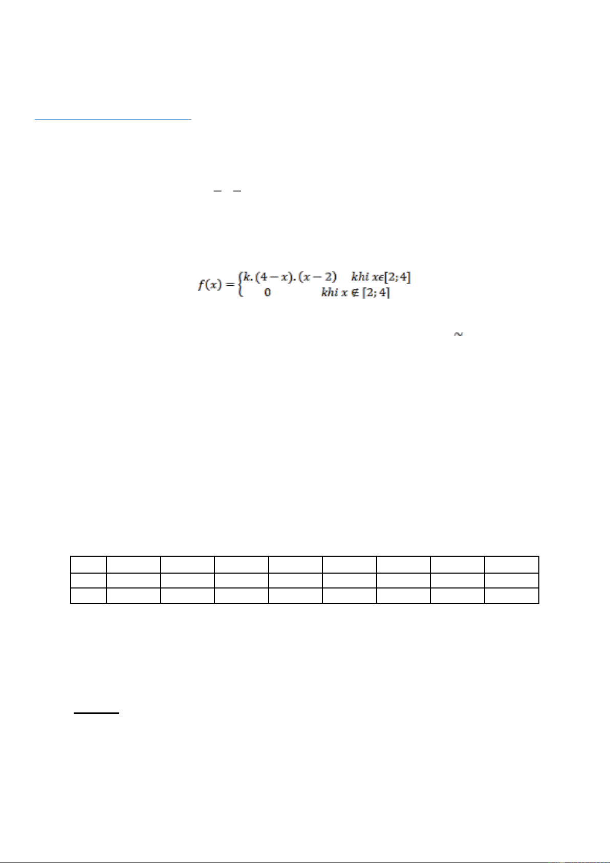 Câu 2.(2 điểm): Cho hàm mật độ của biến ngẫu nhiên X: