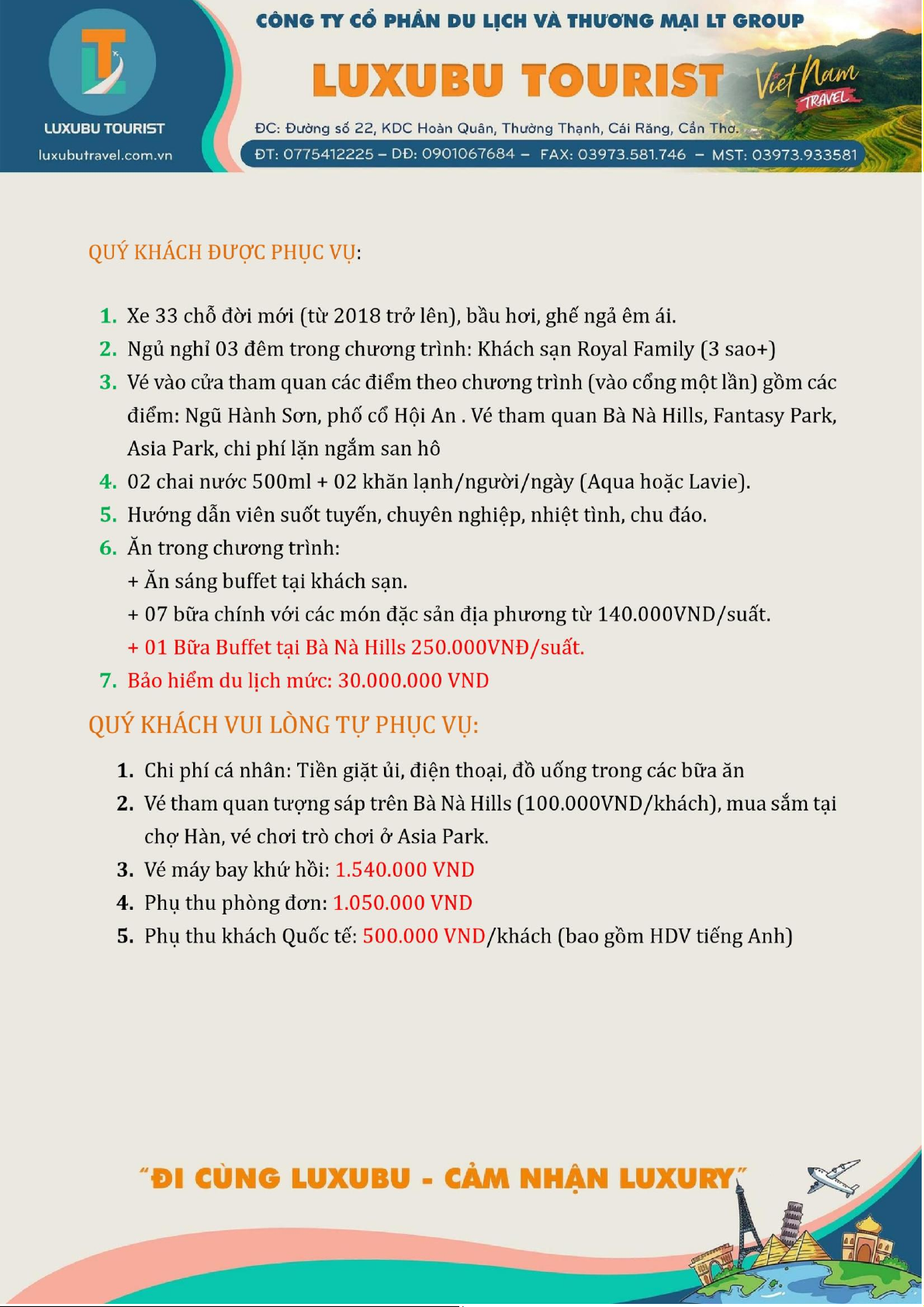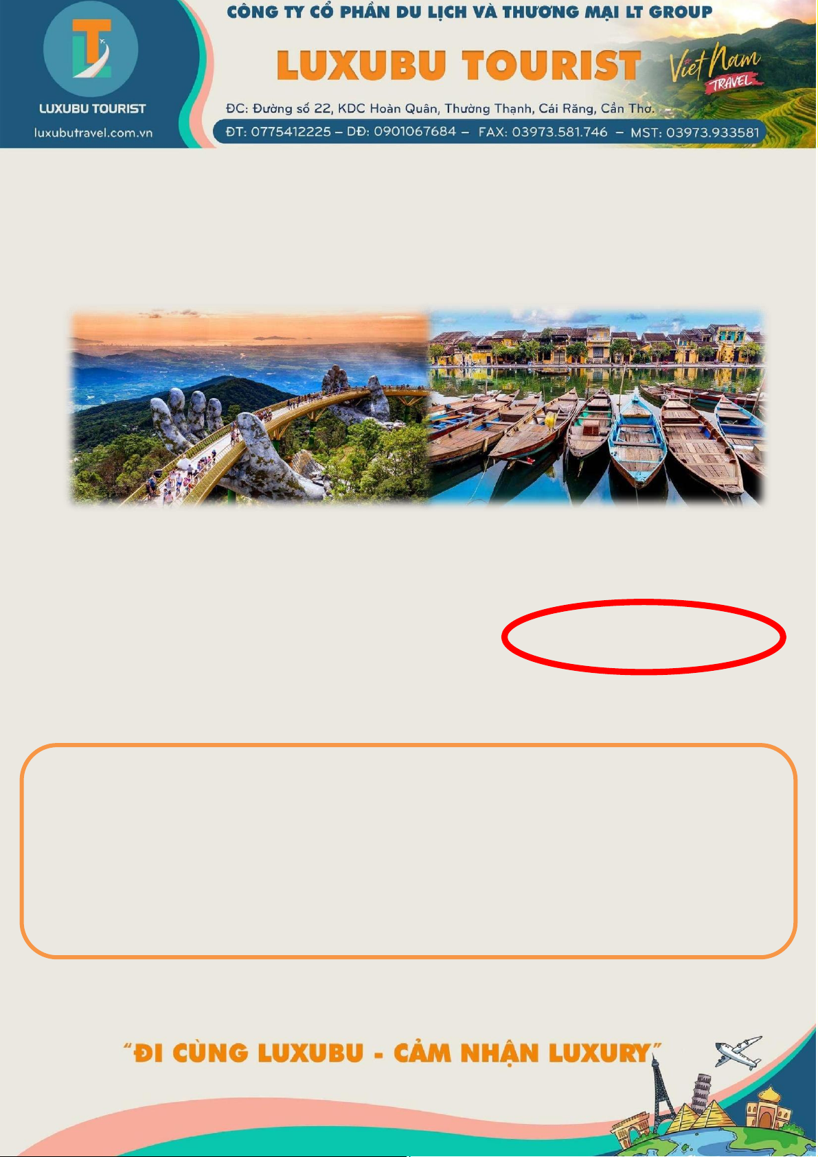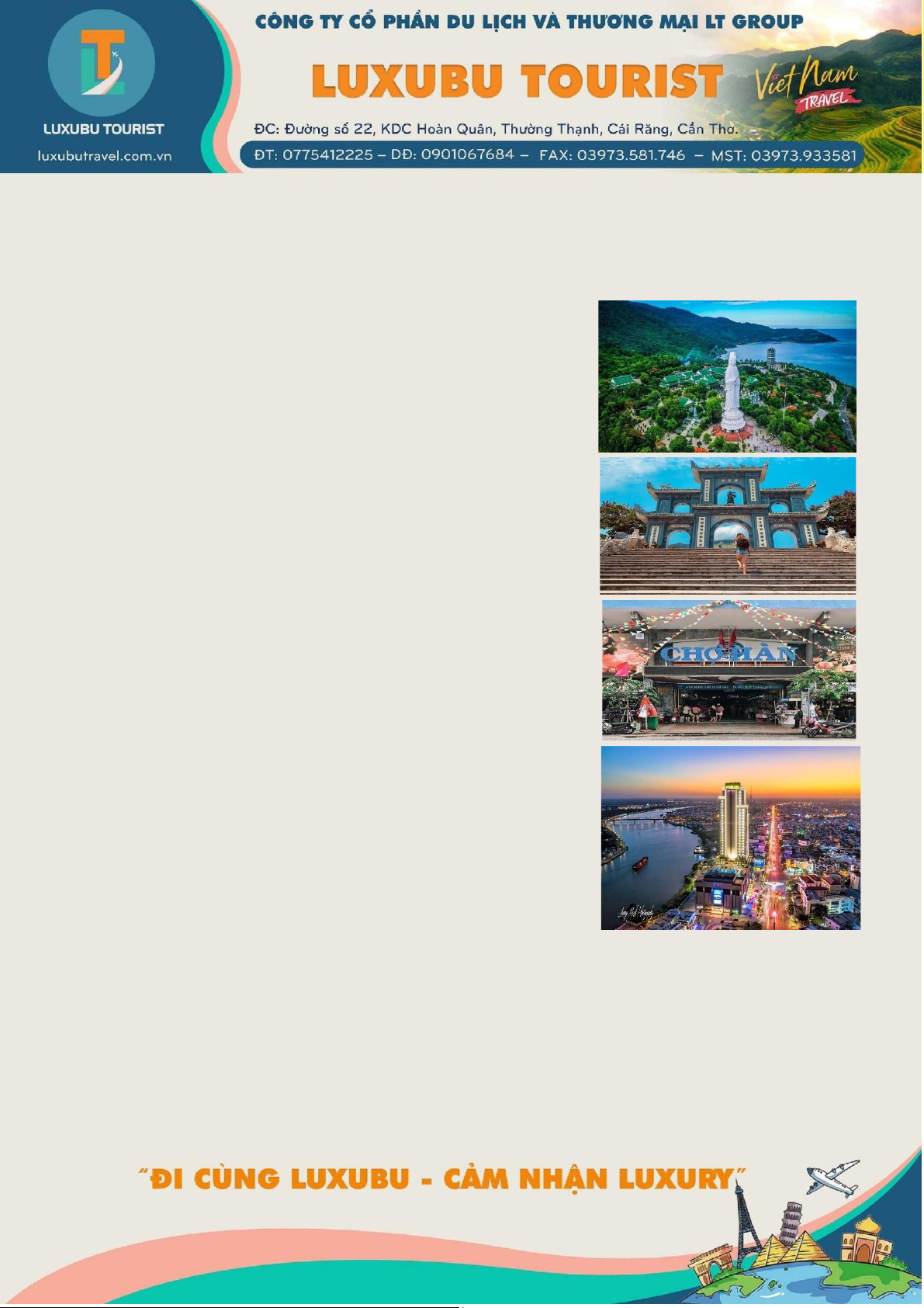 18h30: xe oán khách về lại khách sạn ể nghỉ ngơi. NGÀY 4: ĐÀ NẴNG – CẦN THƠ Buổi sáng
