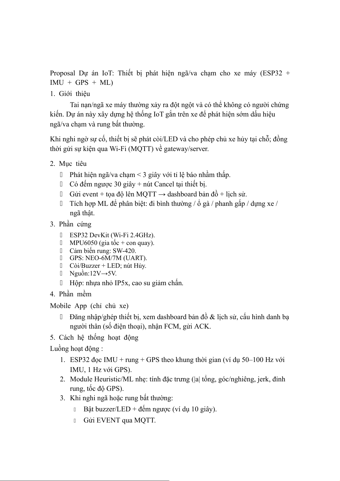 Proposal Dự án IoT: Thiết bị phát hiện ngã/va chạm cho xe máy (ESP32 +