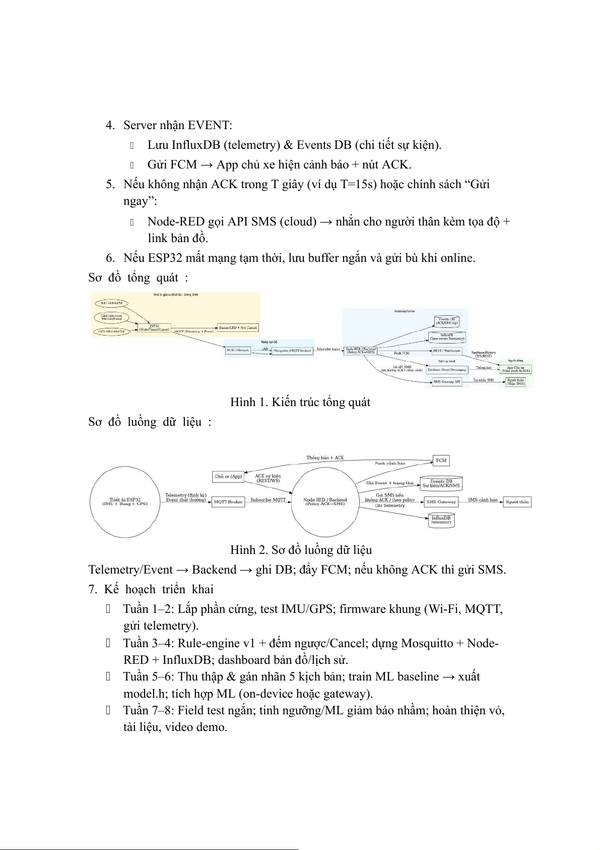 Tuần 7–8: Field test ngắn; tinh ngưỡng/ML giảm báo nhầm; hoàn thiện vỏ, tài liệu, video demo.