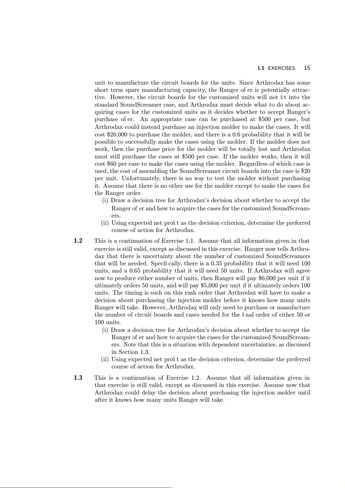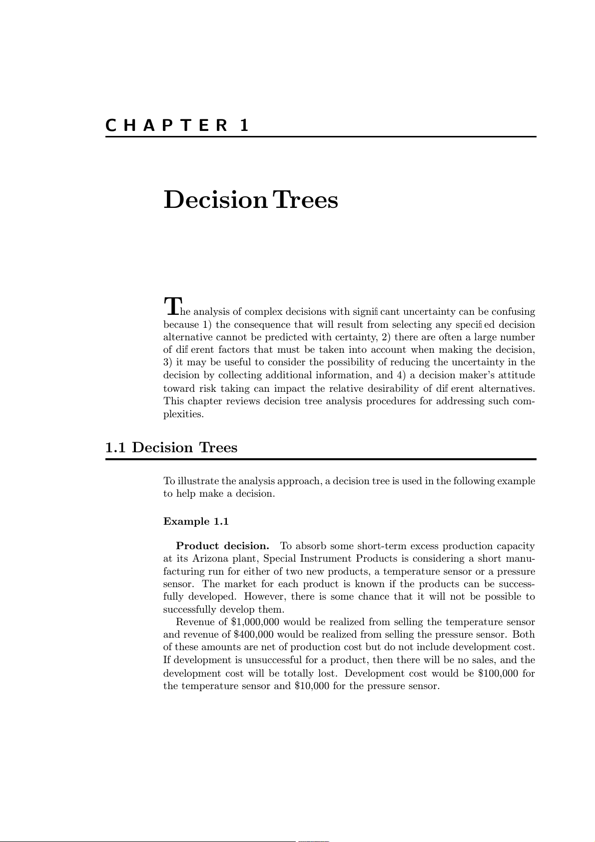 sideration of the Special Instruments Product decision in Example 1.3. Example 1.3 Product decision.