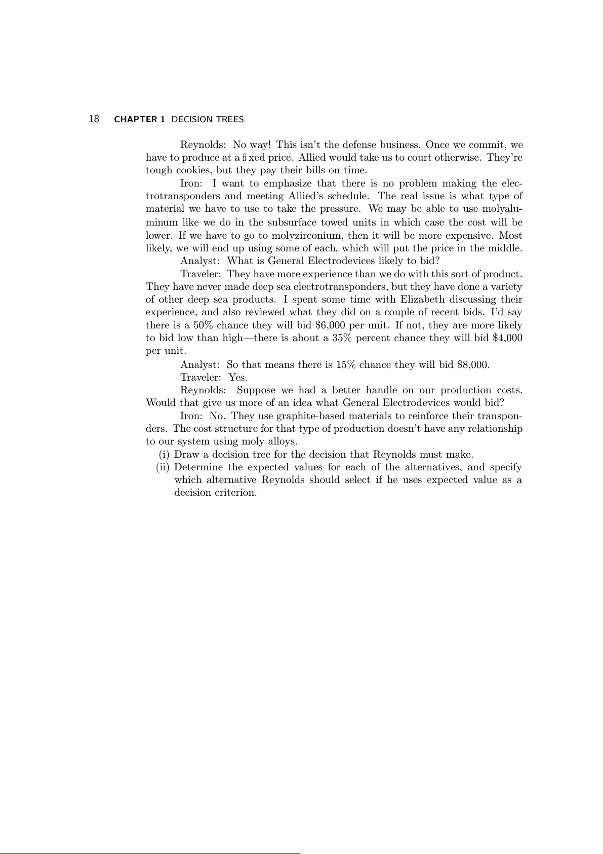 Analyst: Could you do some type of cost-plus contract? 18 CHAPTER 1 DECISION TREES