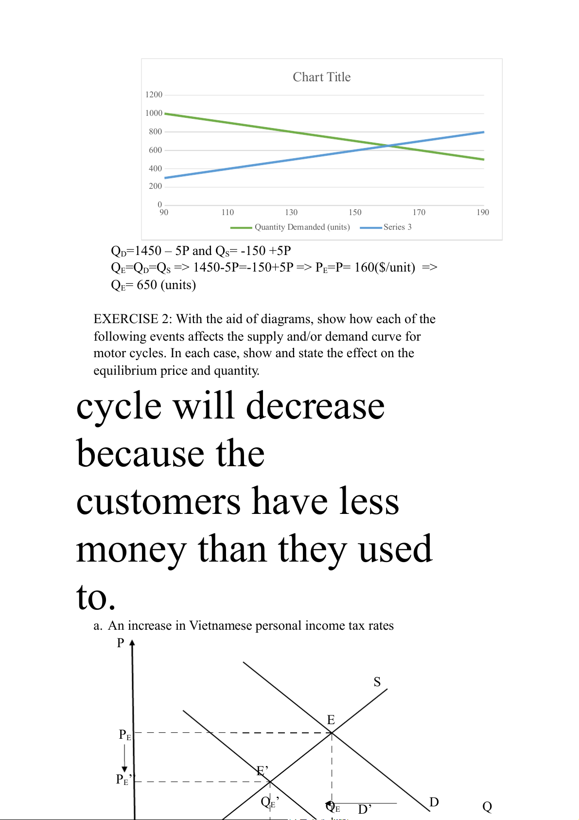 a. An increase in Vietnamese personal income tax rates P S E PE E’ PE’’ QE’ Q D E D’ Q