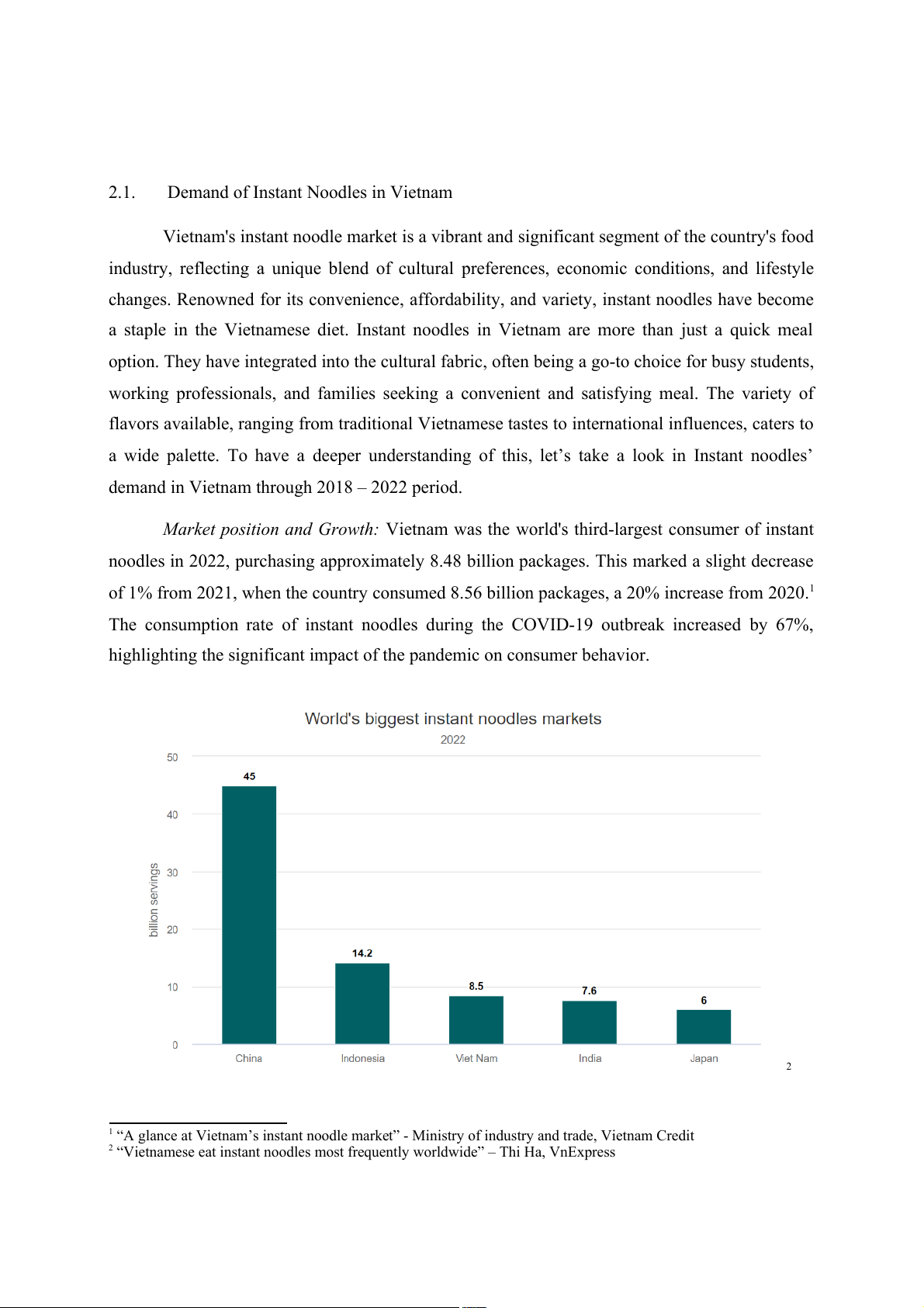 1 “A glance at Vietnam’s instant noodle market” - Ministry of industry and trade, Vietnam Credit