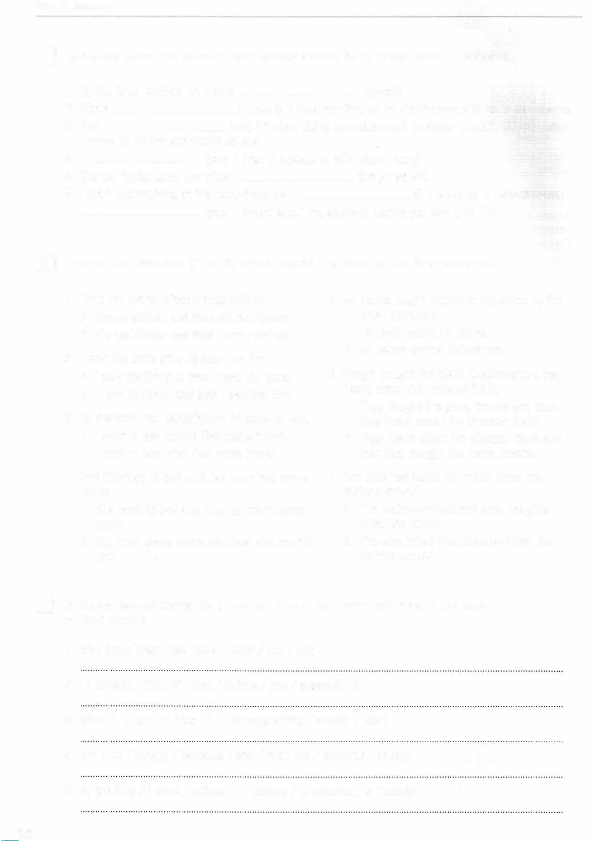 B We had dinner and then Wendy arrived. A I arrived before Mr Banks. 2 B Mr Banks arrived before me.