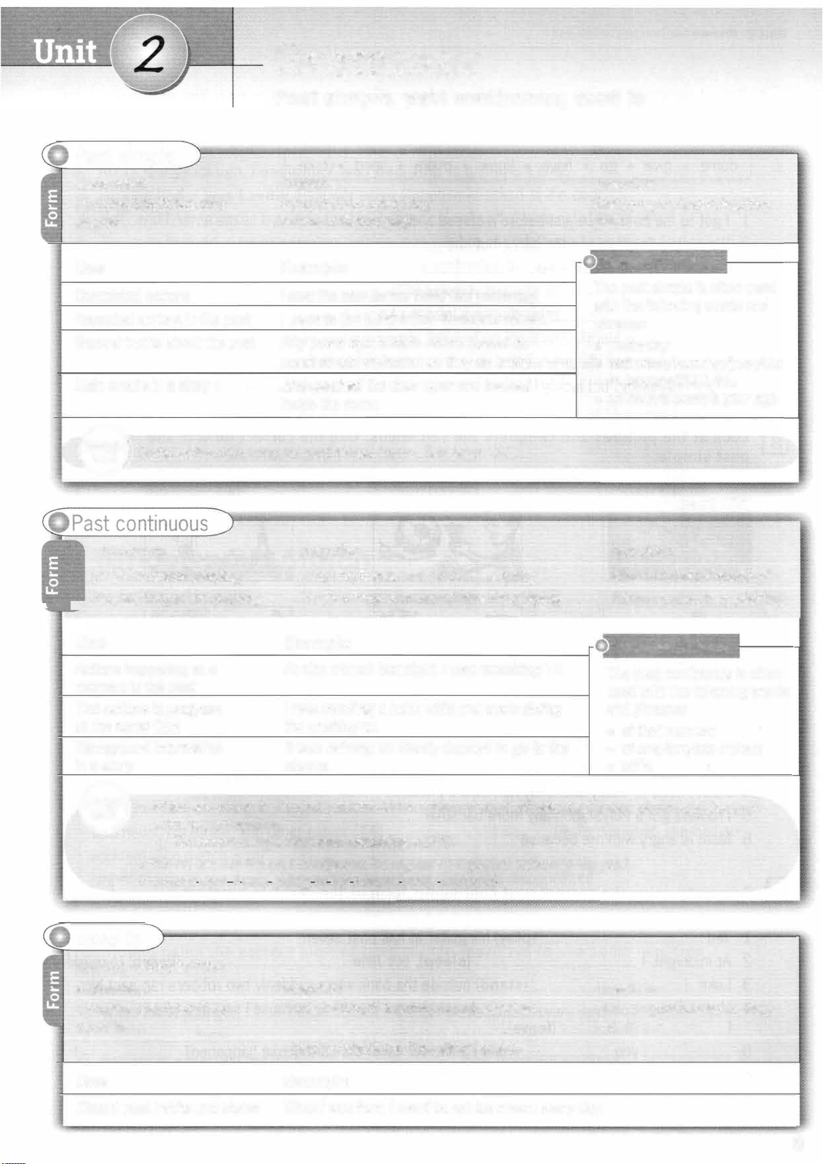Past simple, past continuous, used to