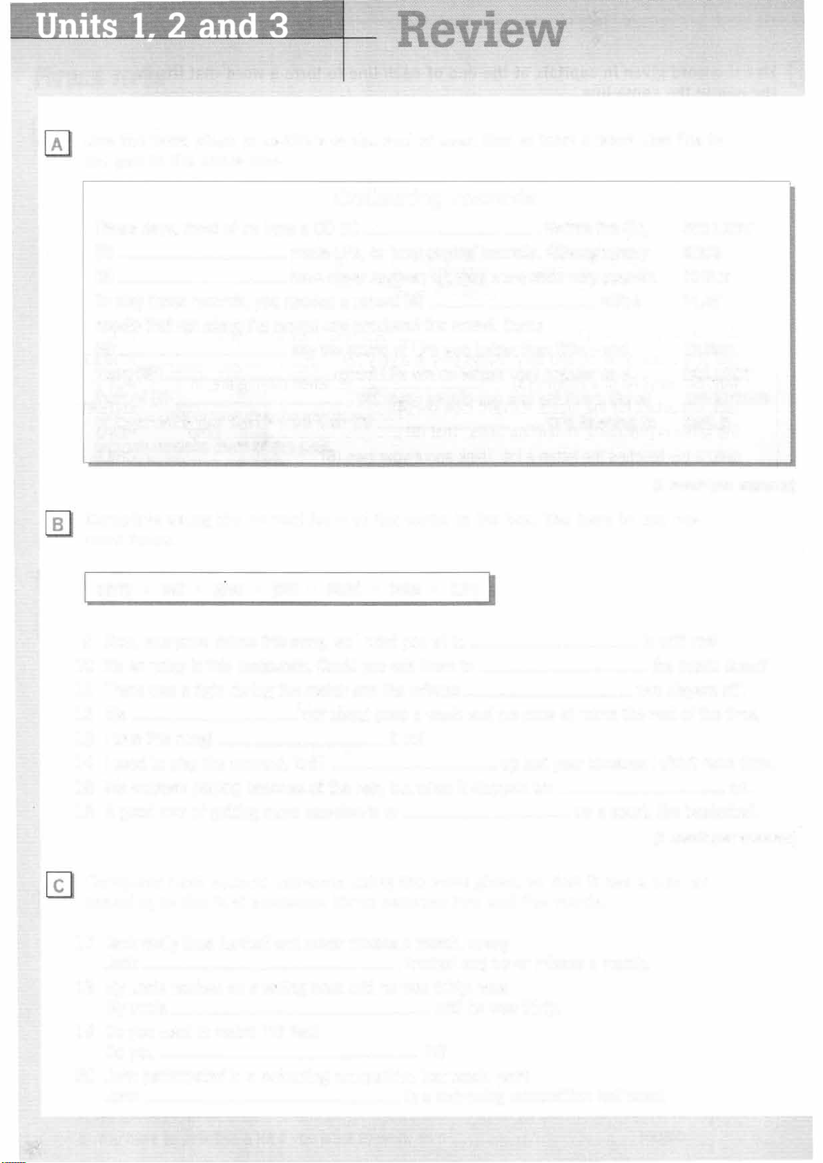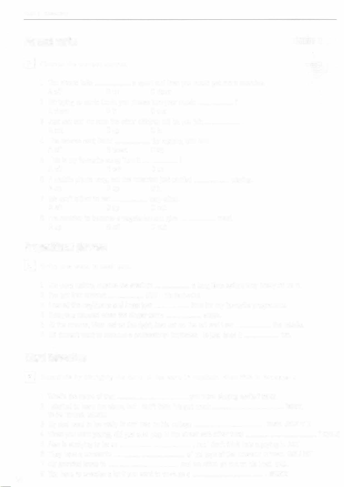 Both, either, neither, so, nor 157 Unit 39 Vocabulary Laughing and crying 160 ' . ' J ·,_, � '(... . �- %",., Unit 40 Grammar Connectives 166 Unit 41 Grammar The causative 169 --------�-- Unit 42 Vocabulary Problems and solutions 172 Reference section Irregular present forms 182 Irregular verbs 182 Topic vocabulary 184 Phrasal verbs 202 Prepositional phrases 206 Word patterns 208 Word formation 212 s Grammar