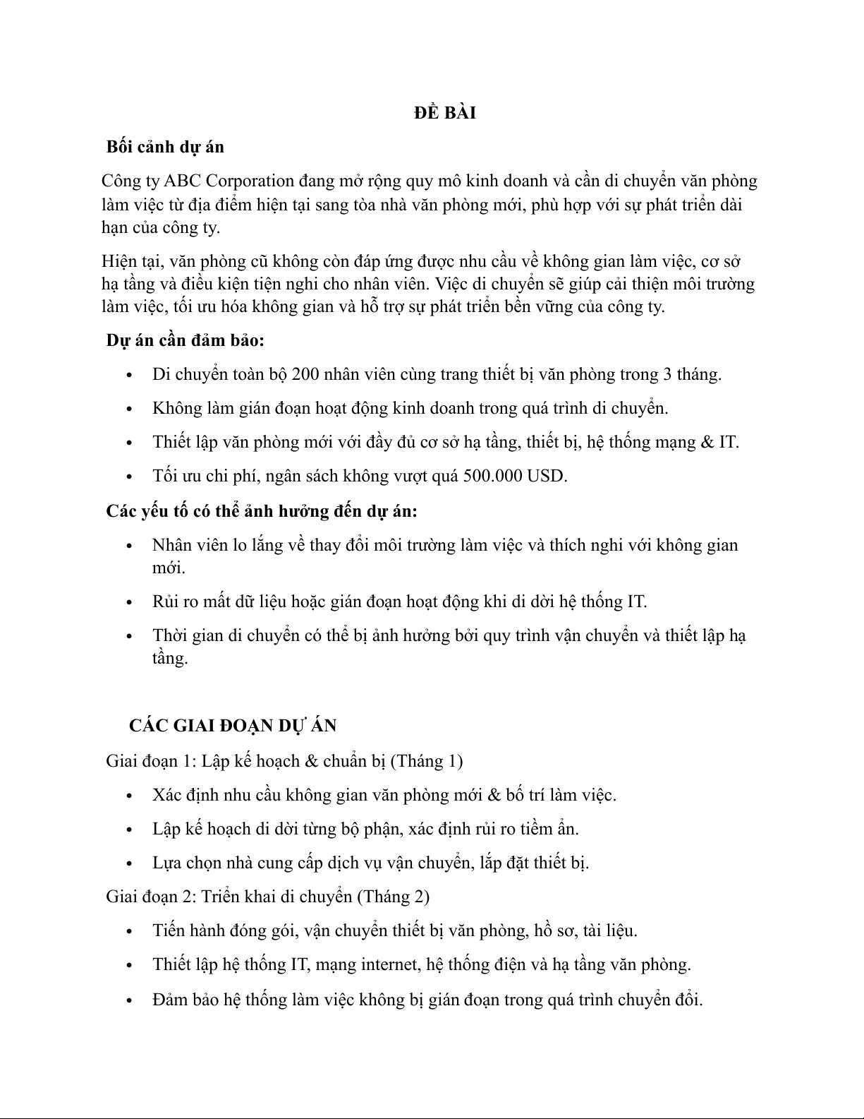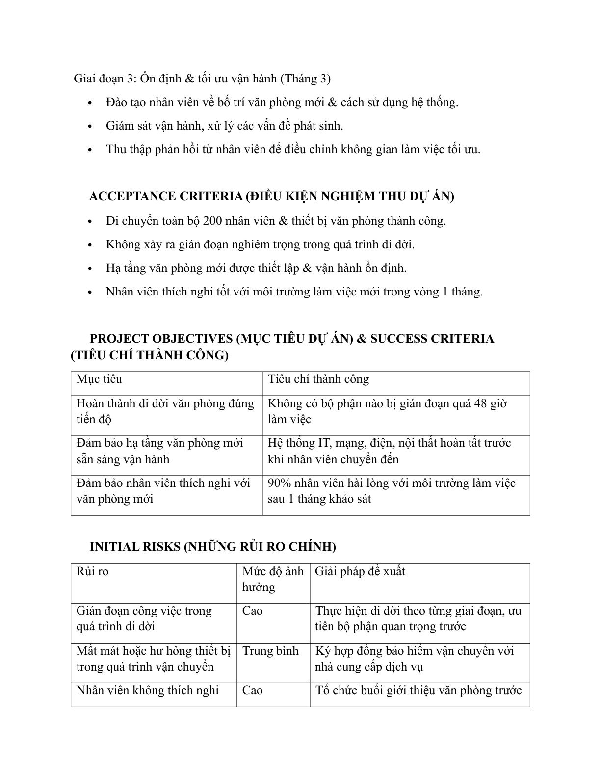 Di chuyển toàn bộ 200 nhân viên cùng trang thiết bị văn phòng trong 3 tháng.