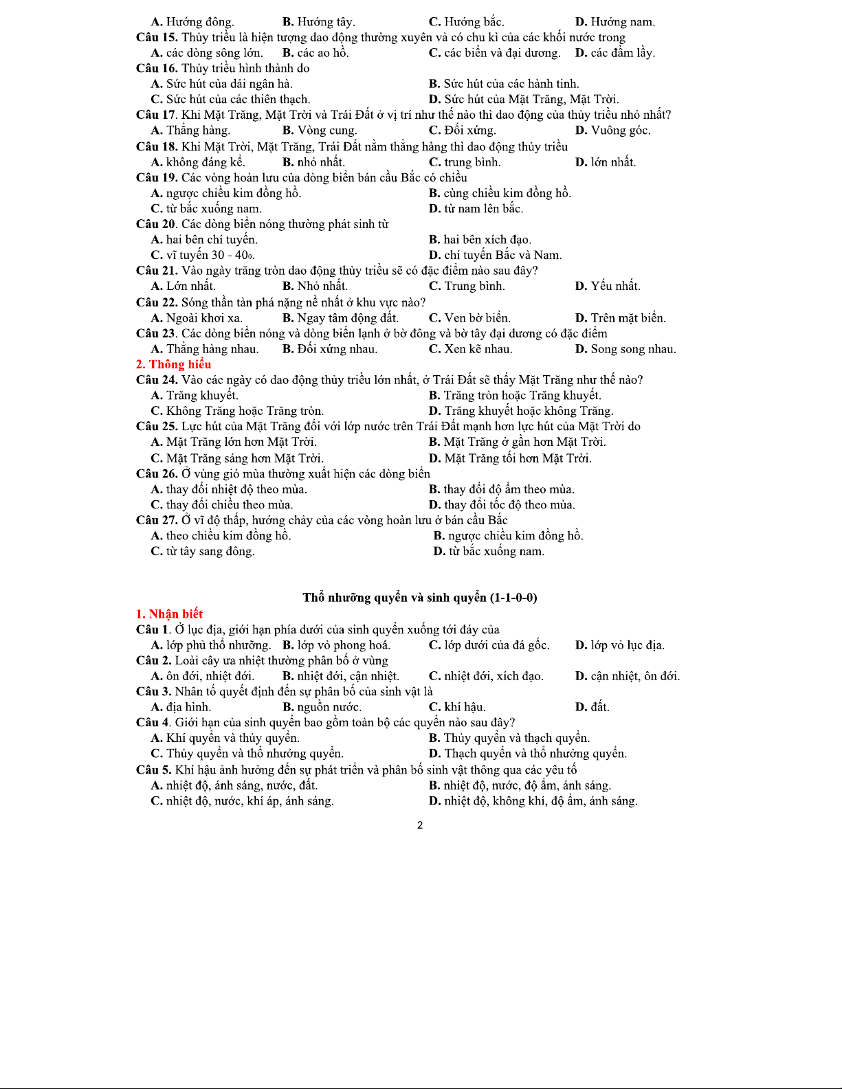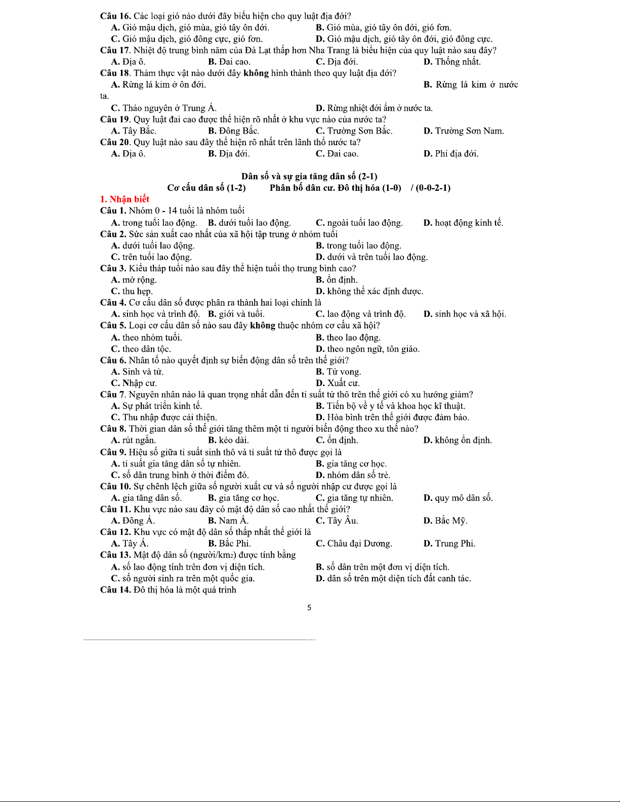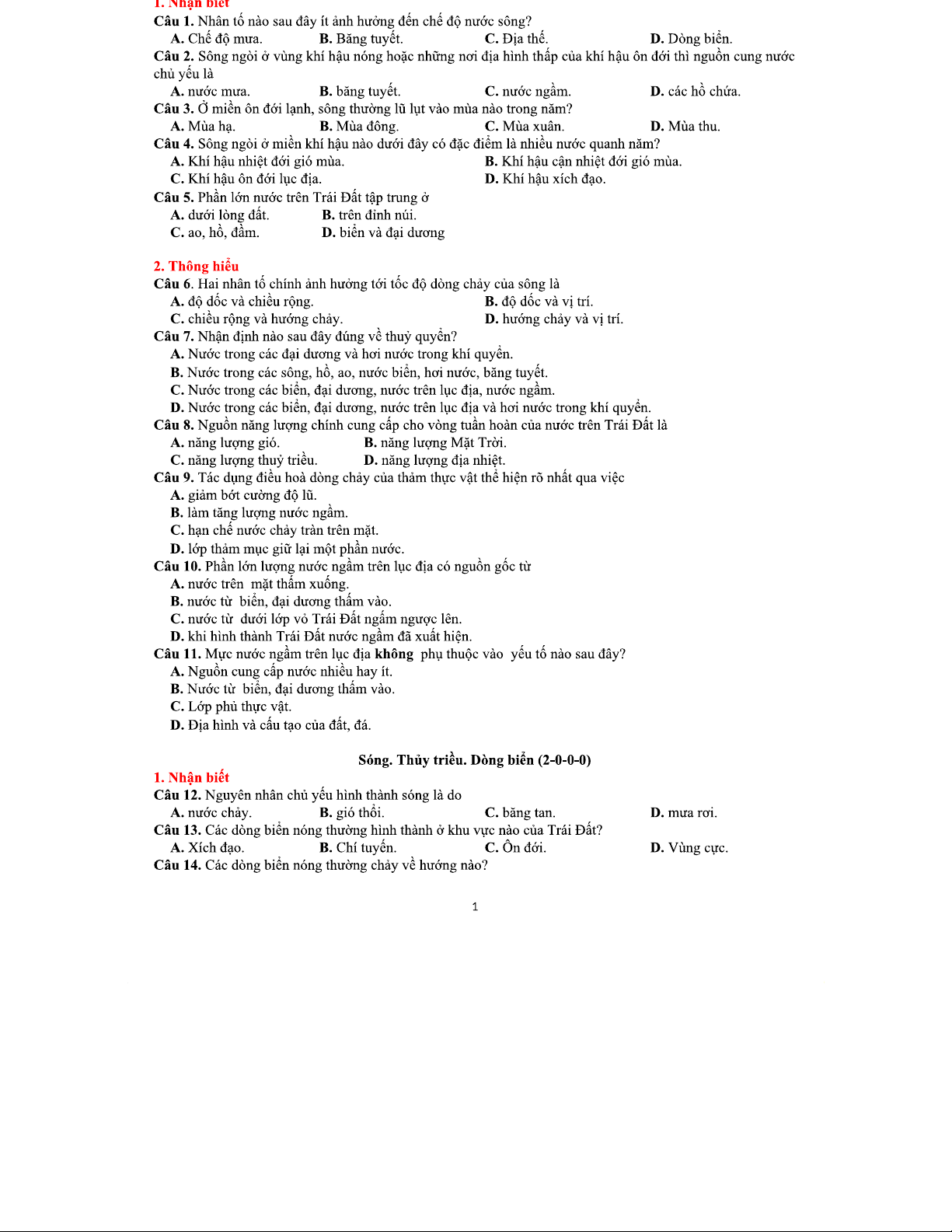 ĐỊA 10 - TÀI LIỆU ÔN TẬP CUỐI HK 1: Nước, Thủy Tượng, và Dân Số