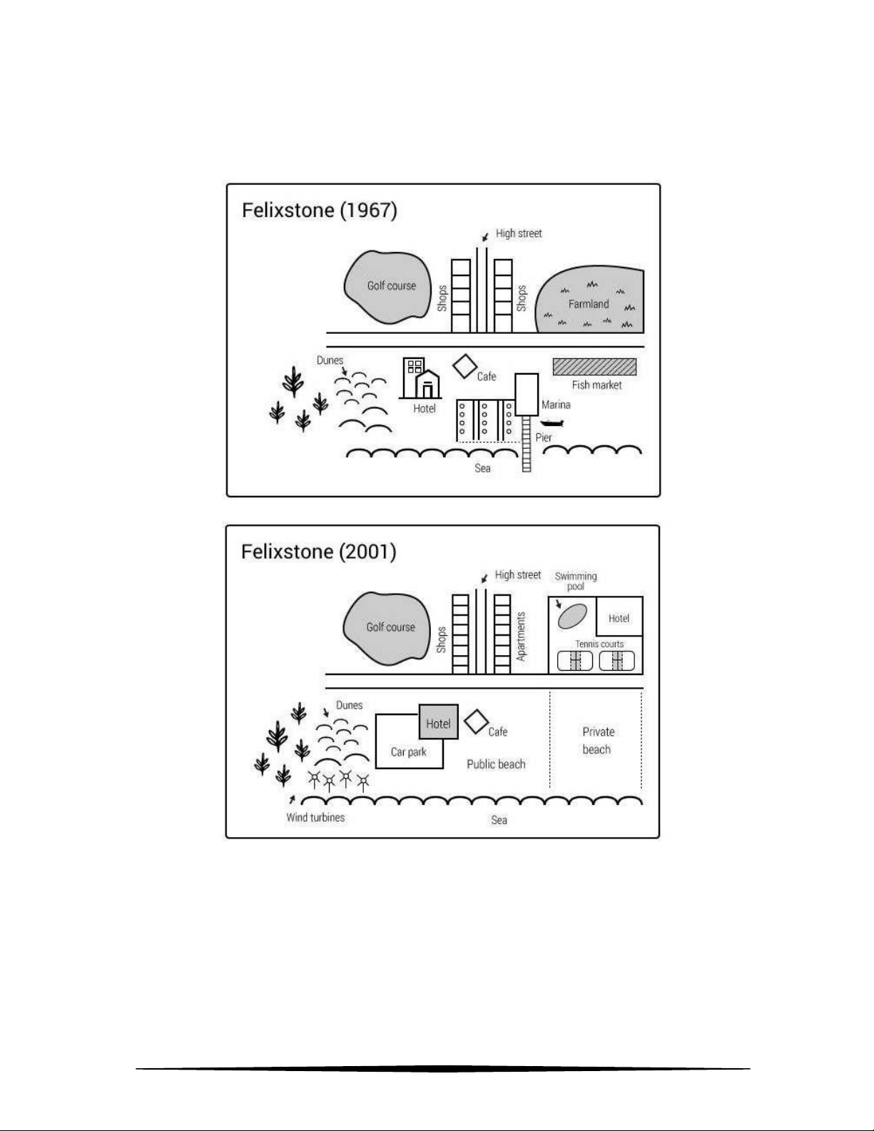 The diagrams below show changes in Felixstone in the UK between 1967 and 2001.