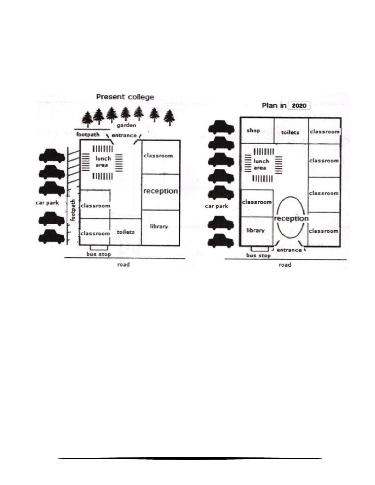 The maps below show the present building of a college and plan for changes to the college site in the future.