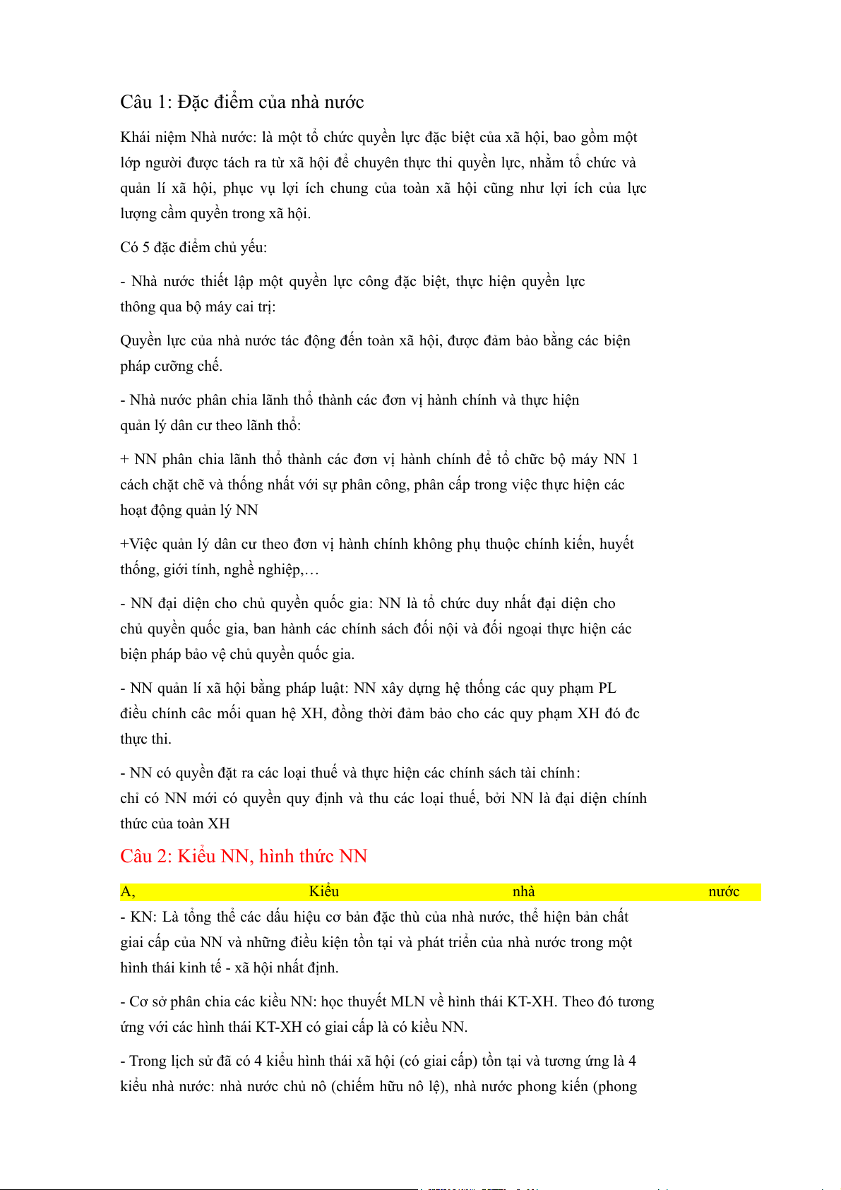 Câu 2: Kiểu NN, hình thức NN A, Kiểu nhà nước
