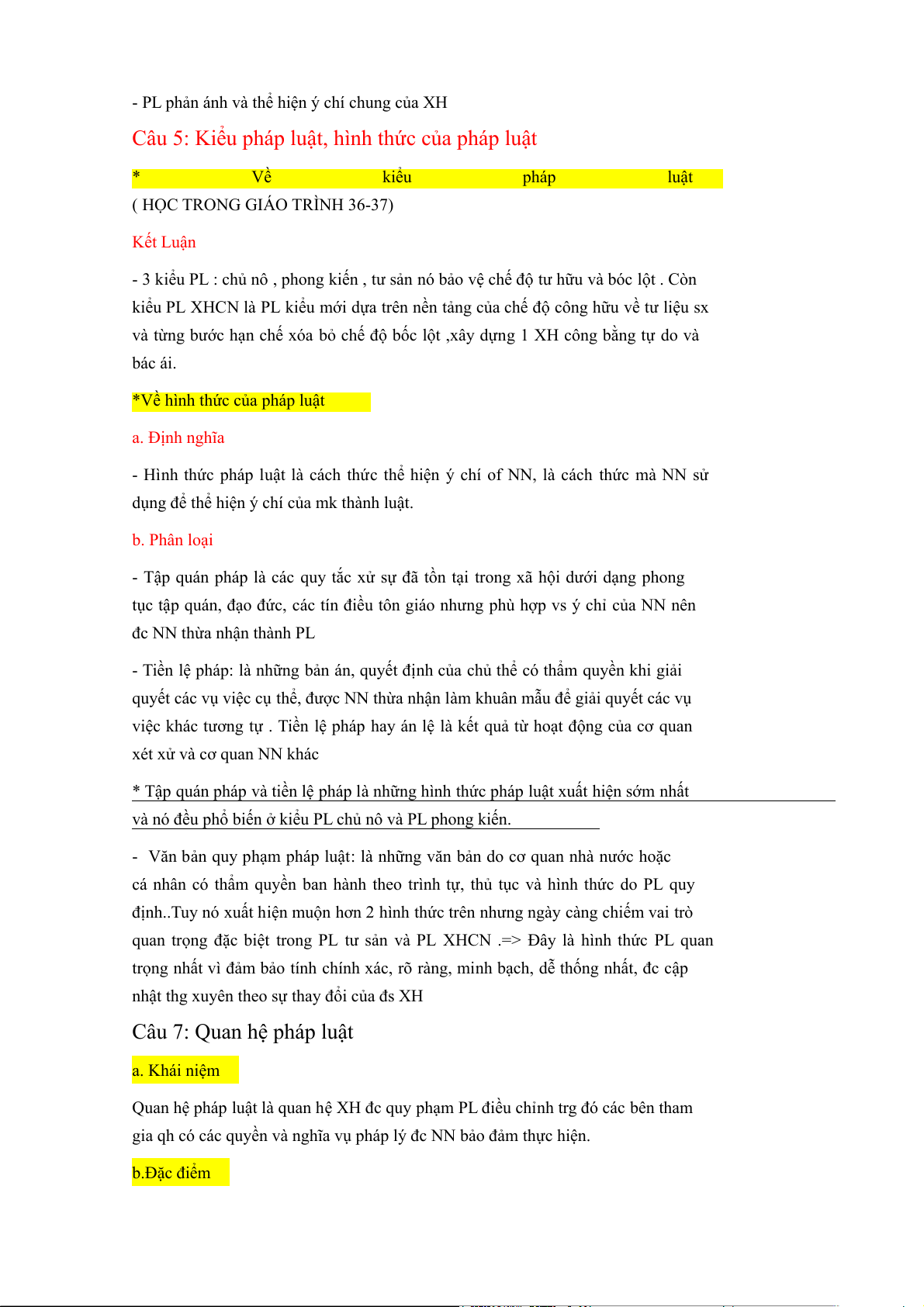 nhật thg xuyên theo sự thay đổi của đs XH Câu 7: Quan hệ pháp luật a. Khái niệm