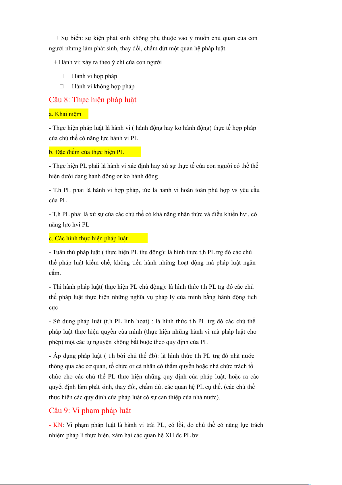 thực hiện các quy định của pháp luật có sự can thiệp của nhà nước). Câu 9: Vi phạm pháp luật