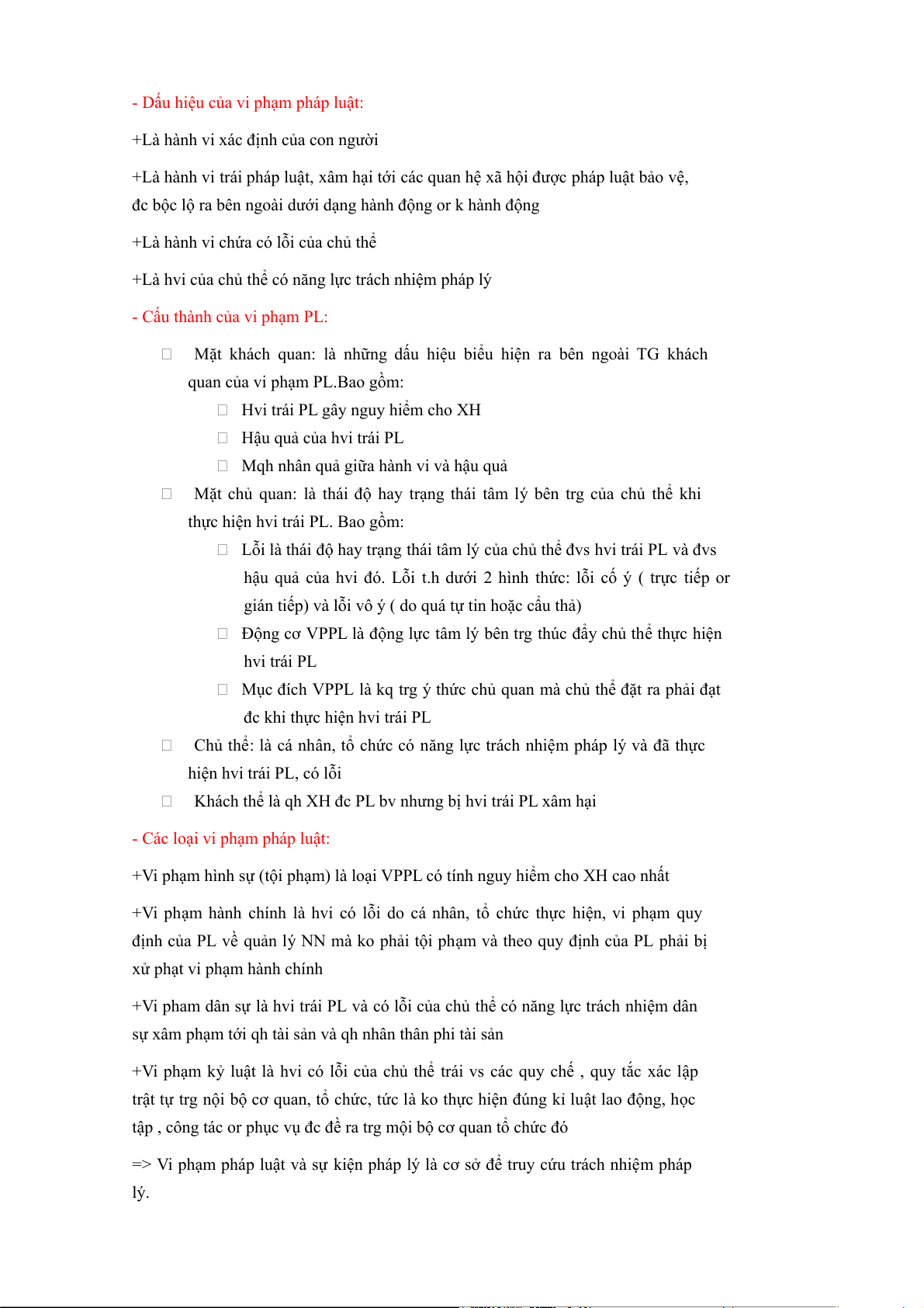- KN: Vi phạm pháp luật là hành vi trái PL, có lỗi, do chủ thể có năng lực trách