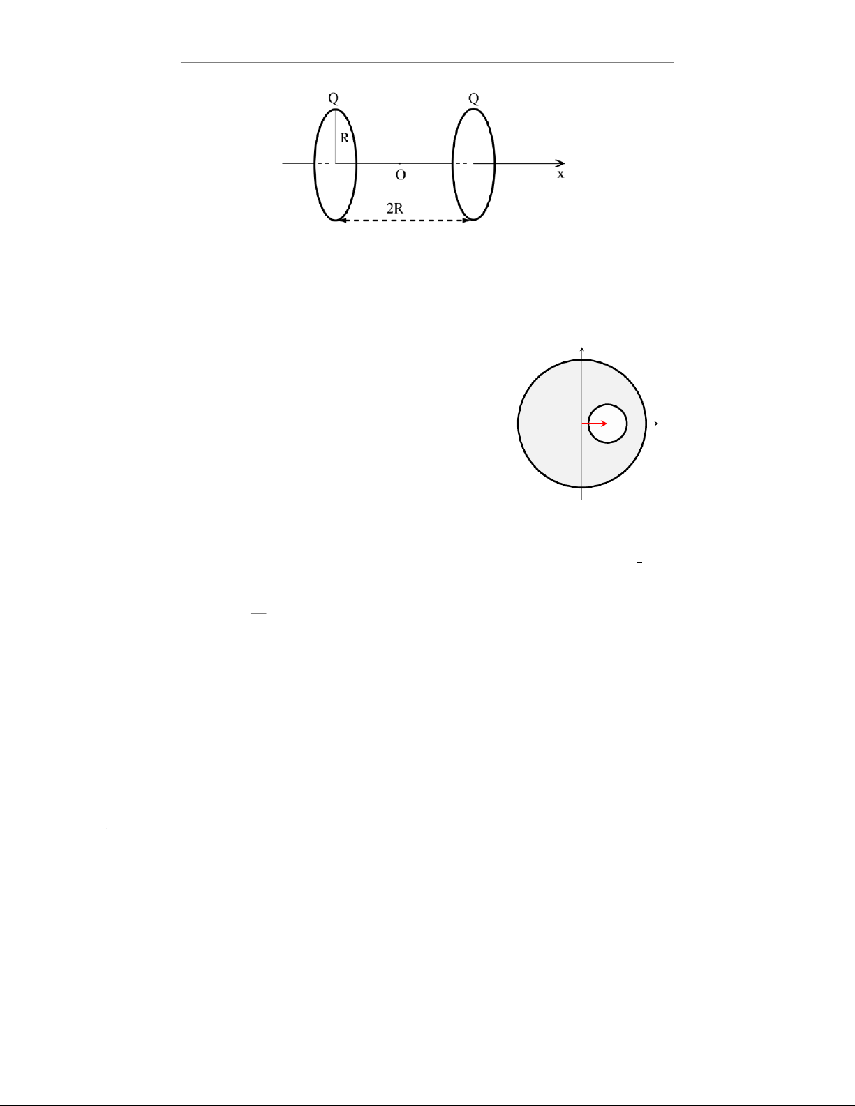 khoảng cách giữa hai vòng là 2R. Chọn trục tọa độ Ox trùng với trục đối xứng của hai vòng với