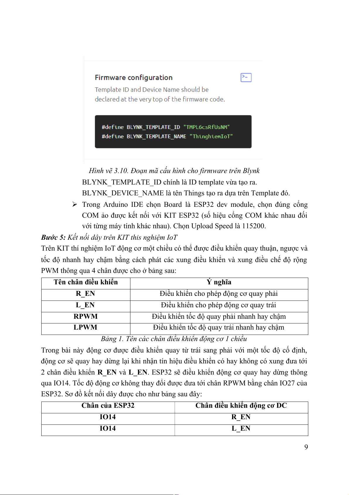 qua IO14. Tốc độ động cơ không thay đổi được đưa tới chân RPWM bằng chân IO27 của