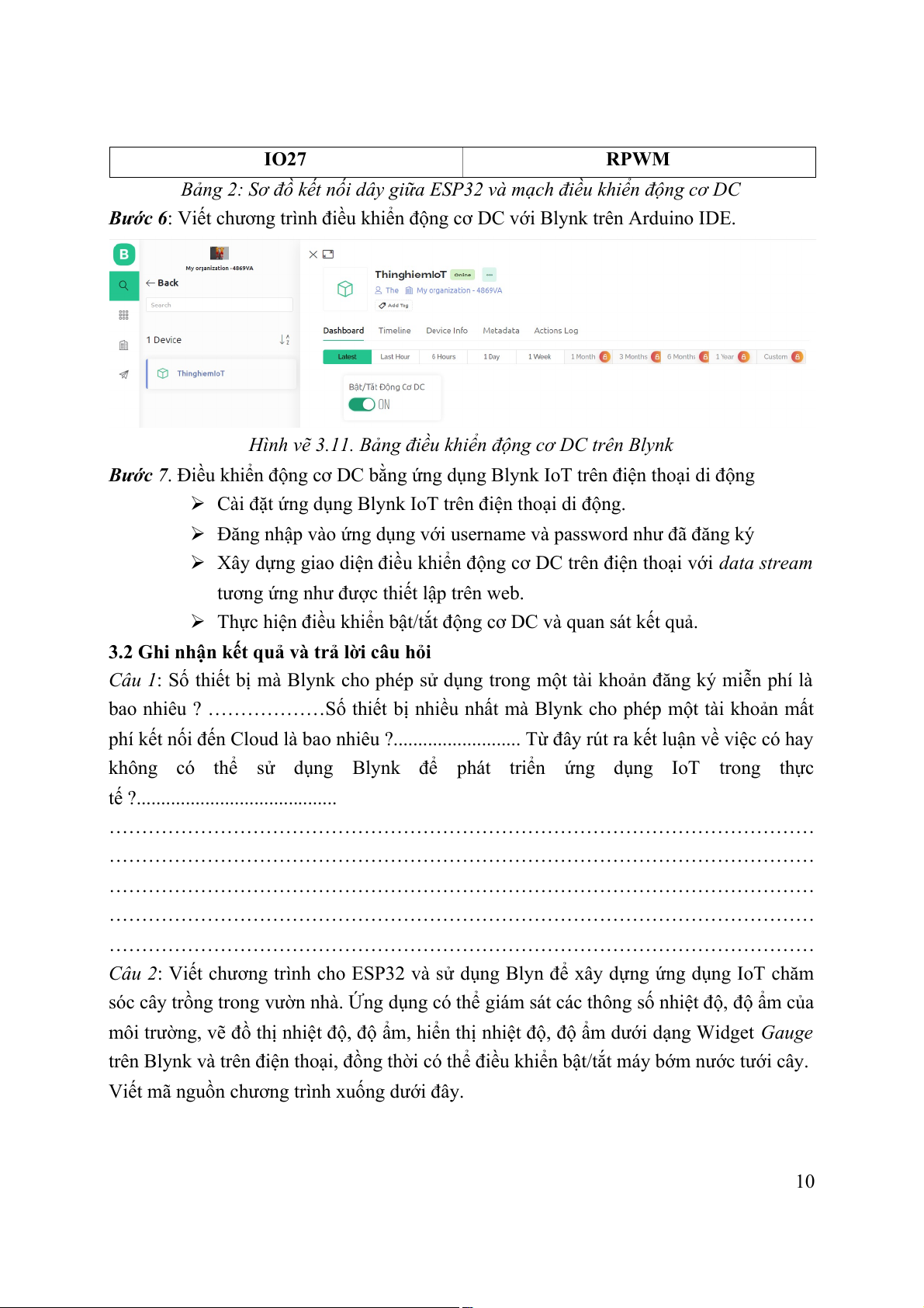 Sinh viên đã có tài liệu thí nghiệm cho môn học IoT và ứng dụng.