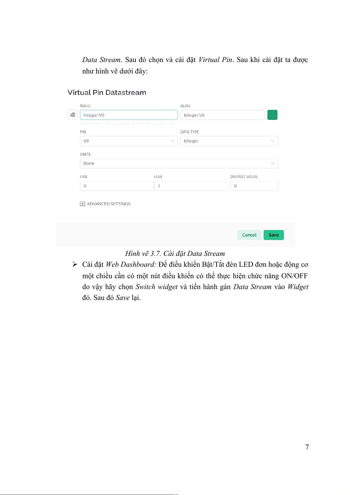 Để điểu khiển Bật/Tắt đè Web Dashboard: n LED đơn hoặc động cơ