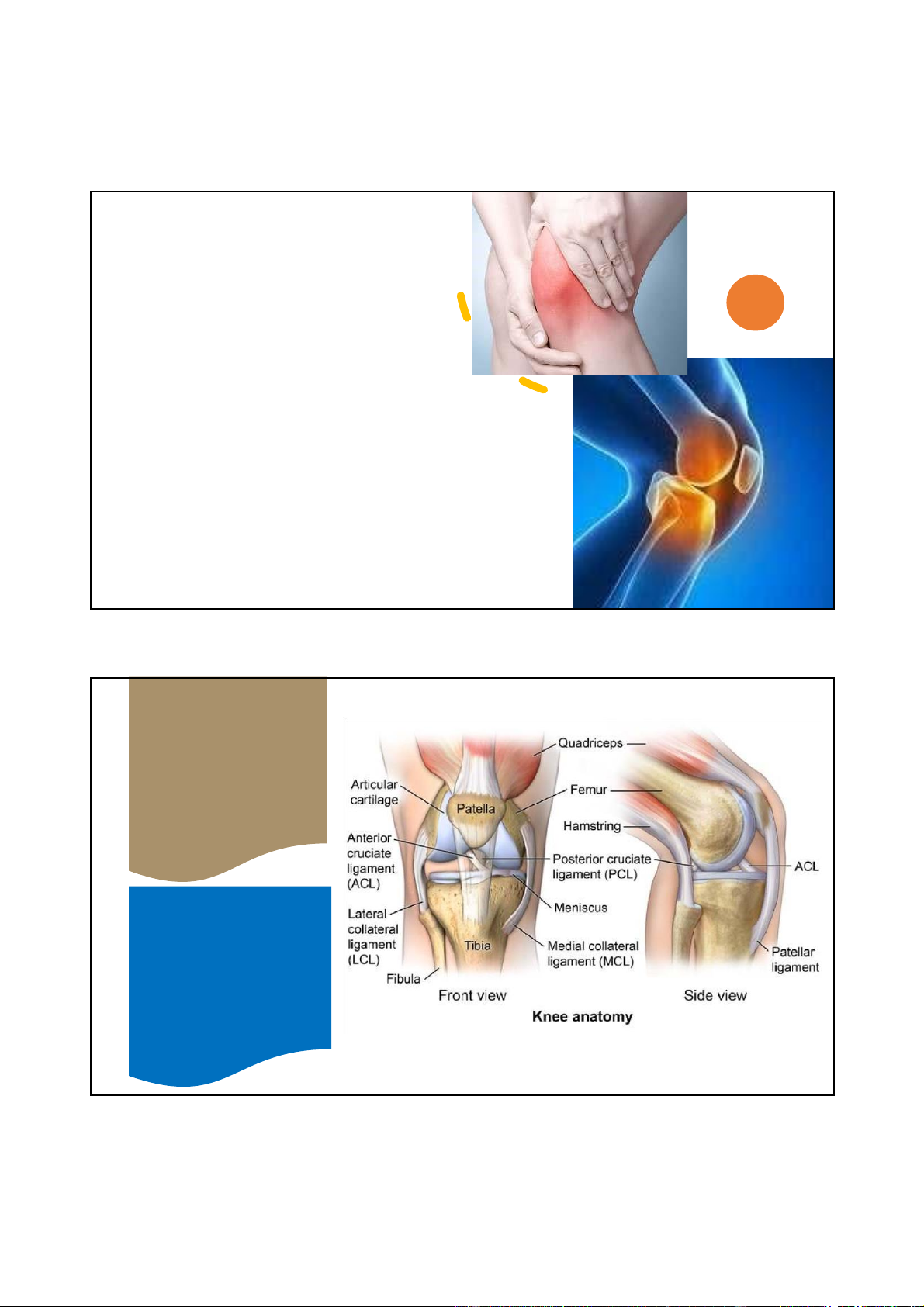 • Giải phẫu khớp gối • Nguyên nhân • Yếu tố nguy cơ • Chẩn đoán • Điều trị • Kết luận 2 lOMoAR cPSD| 22014077 13/07/2023 Tổng quan