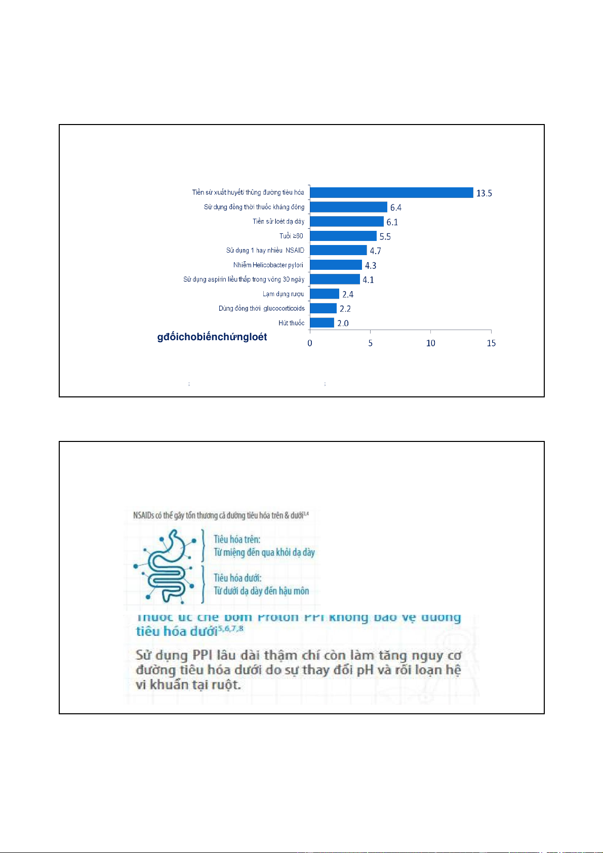 PPI không bảo vệ tiêu hóa dưới Trên dân số dùng NSAIDs, 40 % tổn thương do NSAID là ở đường tiêu hóa dưới 17 17 lOMoAR cPSD| 22014077 13/07/2023