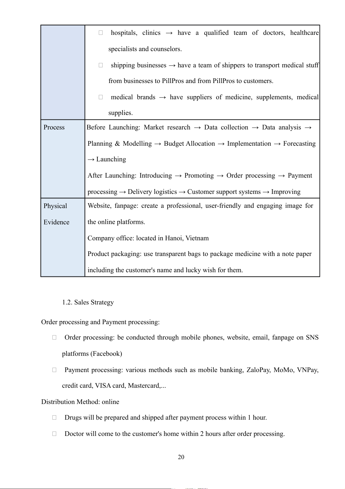 Doctor will come to the customer's home within 2 hours after order processing. 20 1.3. Operational strategy