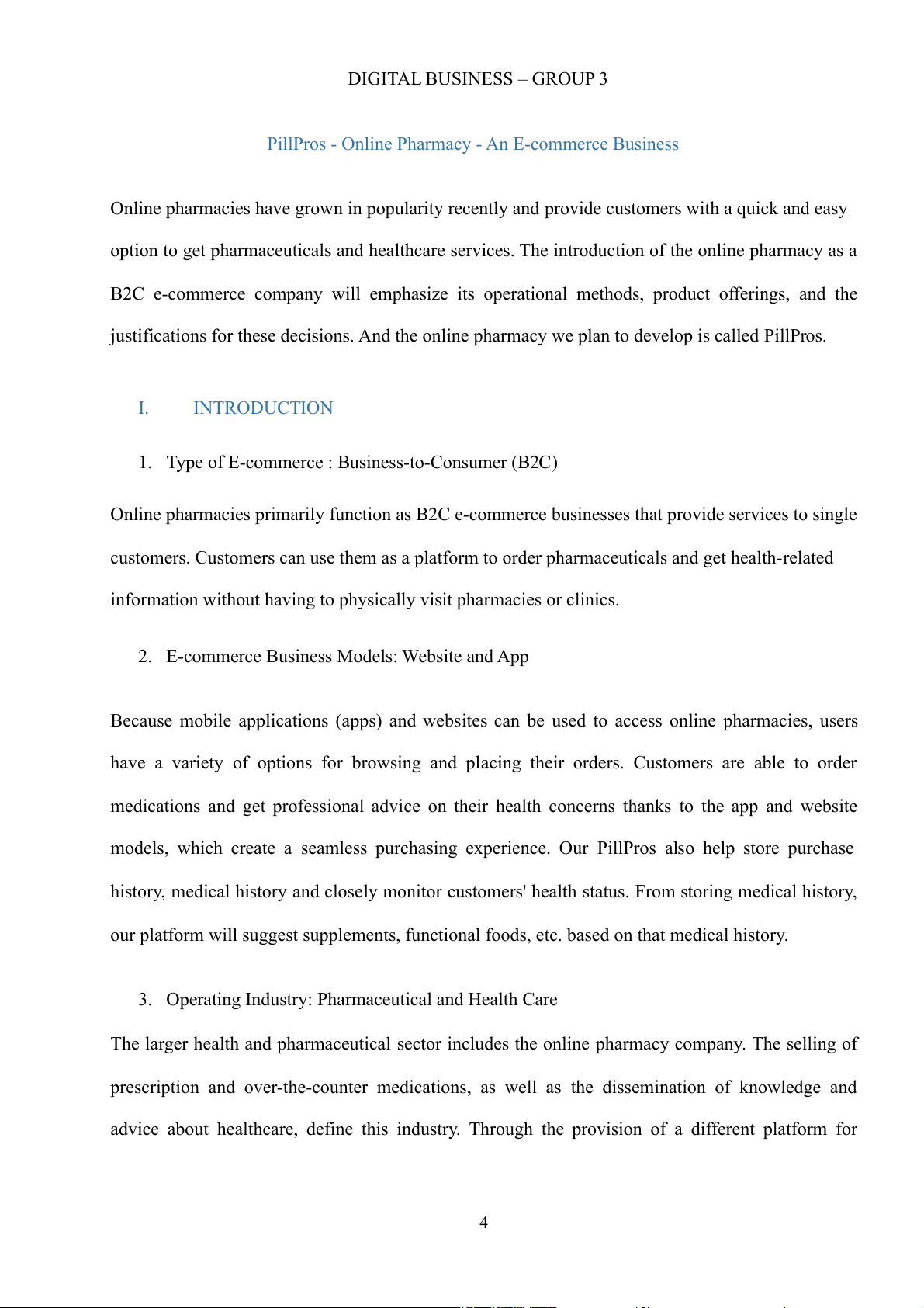 justifications for these decisions. And the online pharmacy we plan to develop is called PillPros. I. INTRODUCTION