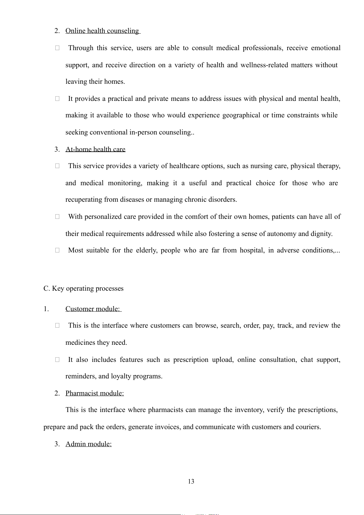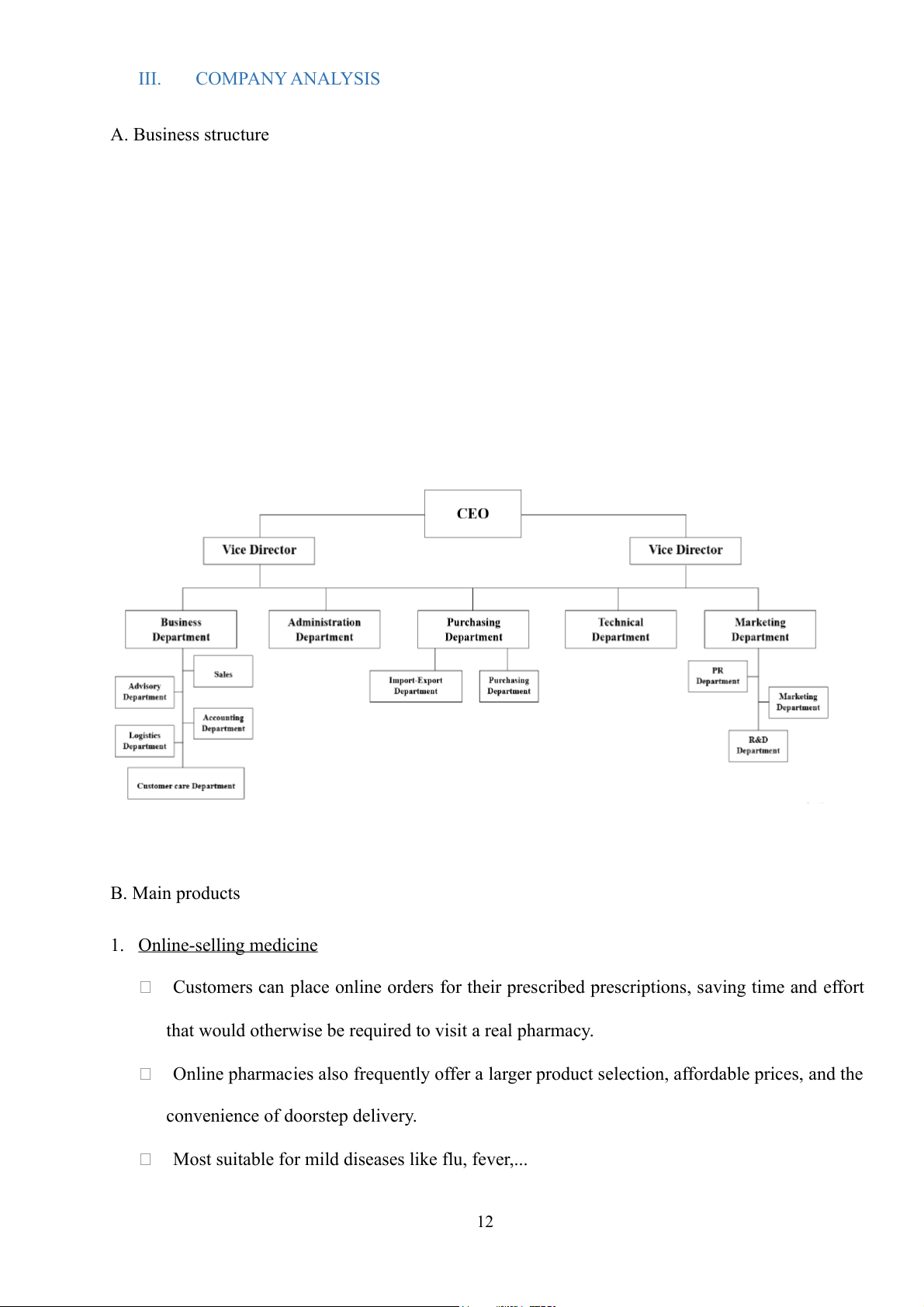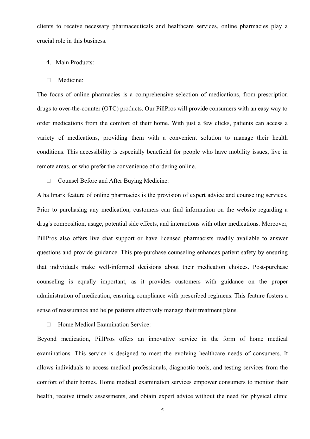 clients to receive necessary pharmaceuticals and healthcare services, online pharmacies play a crucial role in this business. 4. Main Products: Medicine: