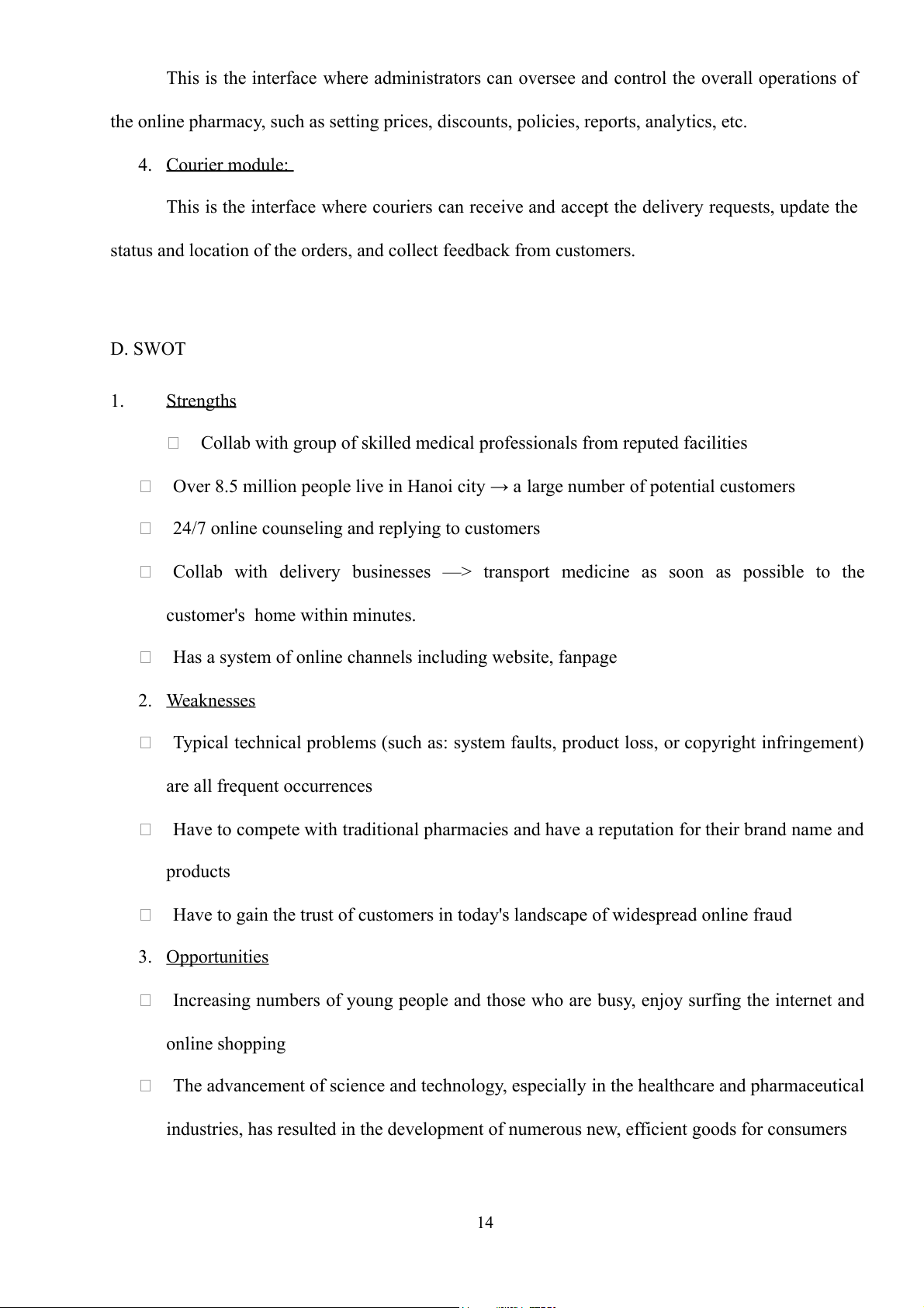 status and location of the orders, and collect feedback from customers. D. SWOT 1. Strengths