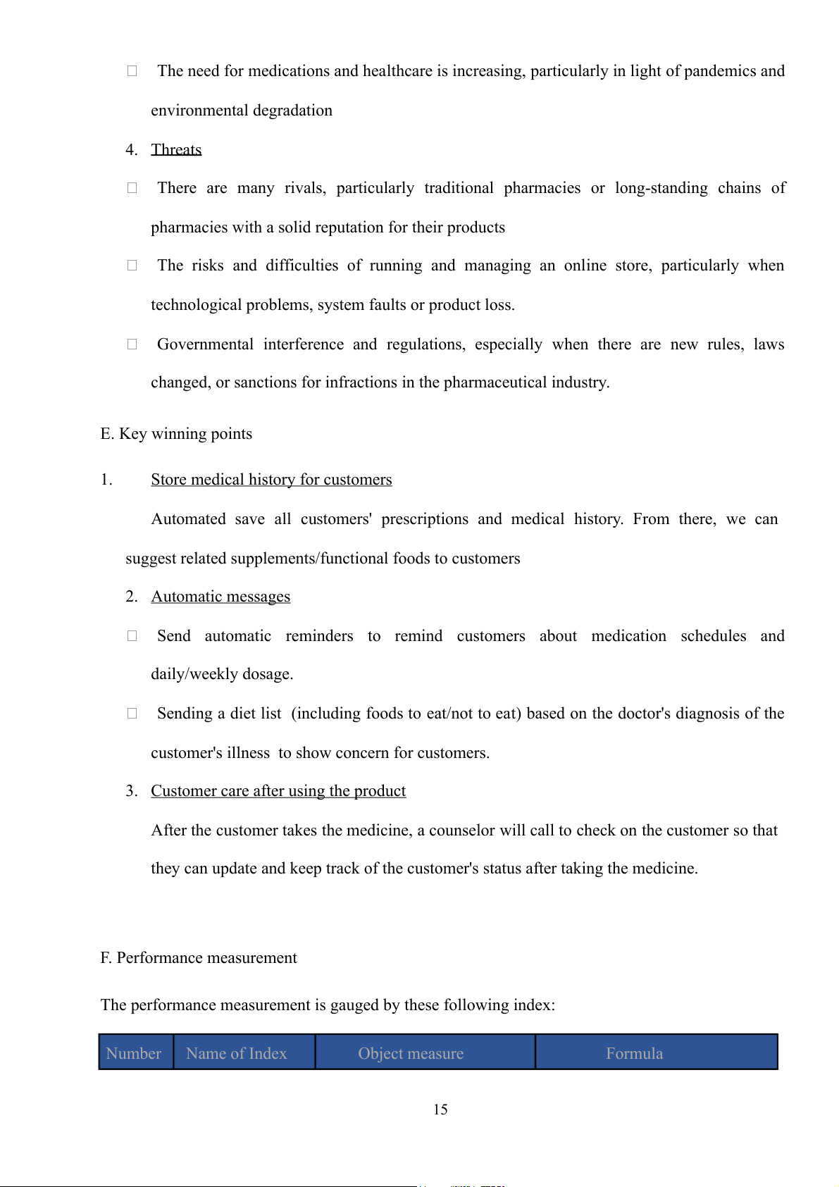 they can update and keep track of the customer's status after taking the medicine. F. Performance measurement