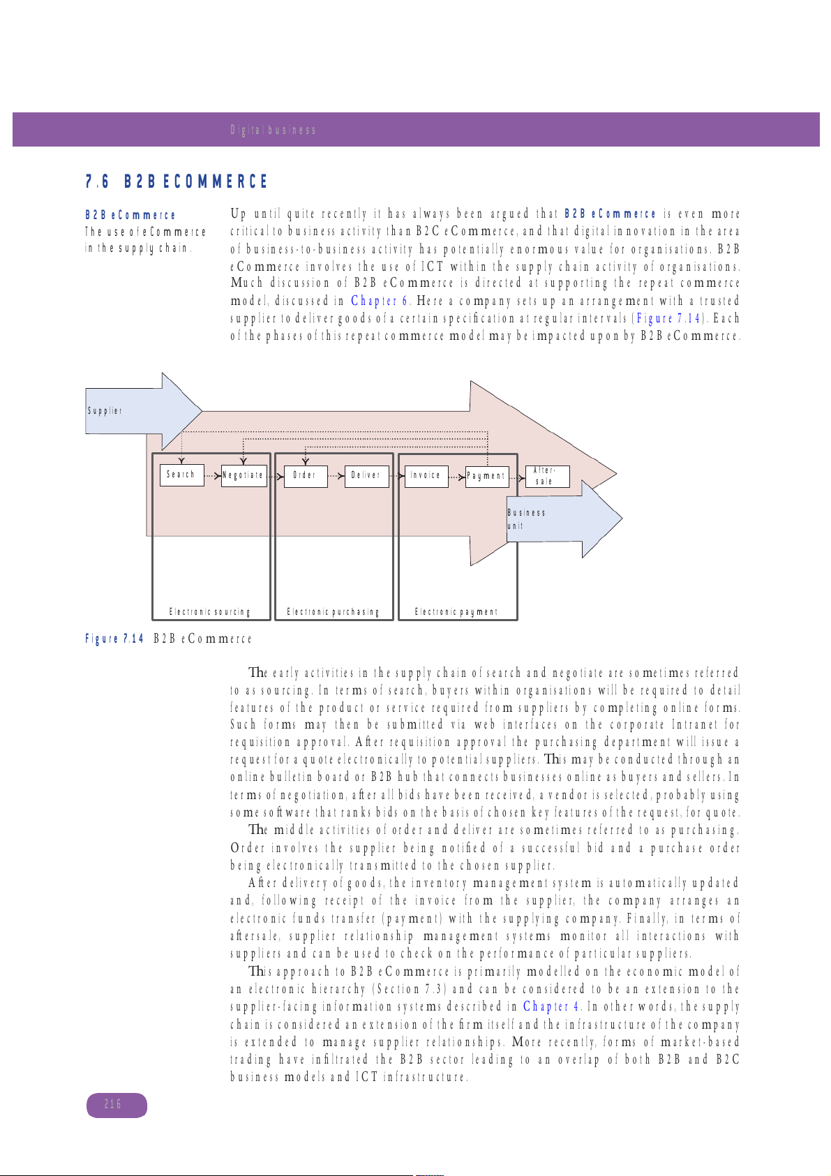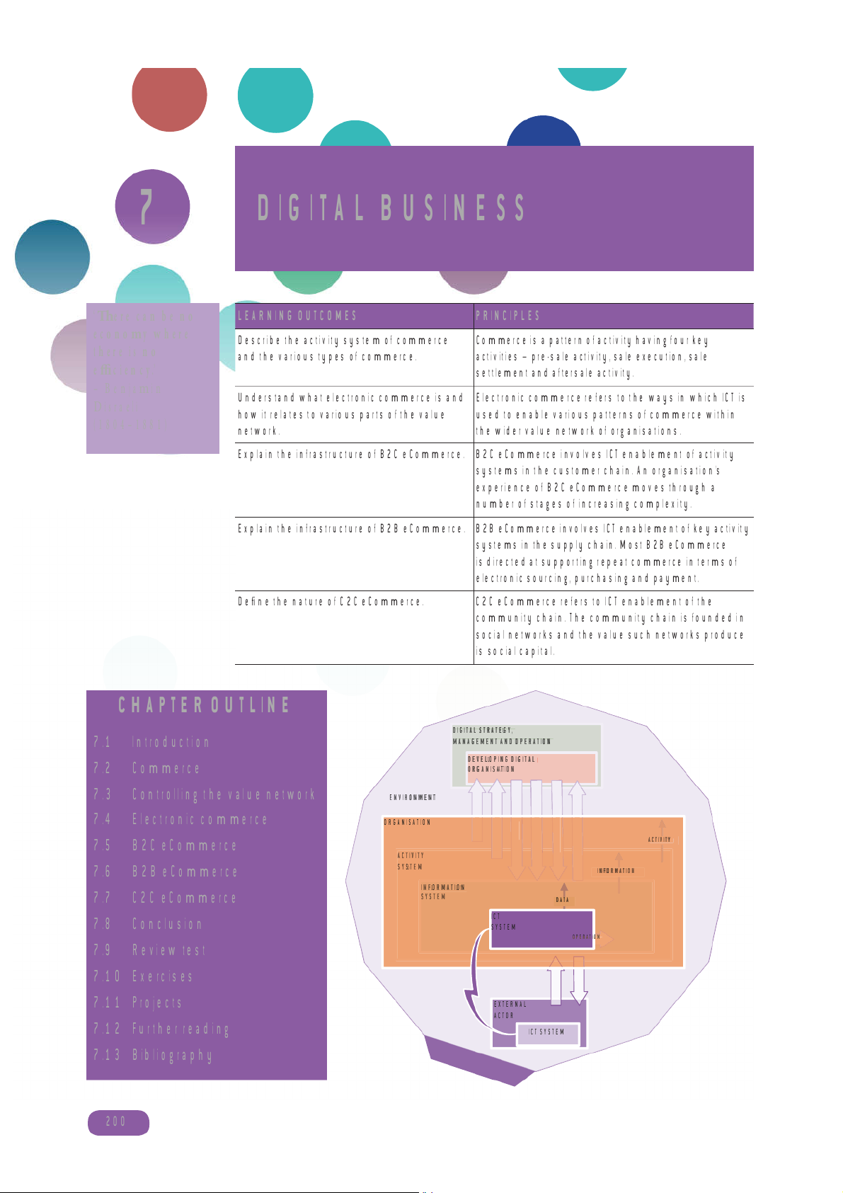 7.3 Controlling the value network EN E VIRONMENT N T TIO EP N SIS 7.4 Electronic commerce CEP N O NCN LYSIS N N LY TIO ATIO O ORGANISATION CO N CO CTIO ANA U ATIO ENT ESIG TRU D 7.5 B2C eCommerce NSNS LEM AC A T C IVITY P EVALU CO IM AC A T C I T V I I V T I Y T 7.6 B2B eCommerce SY S ST Y S E T M E IN I F N O F RM R A M T A I T O I N IN I F N O F RMATION 7.7 C2C eCommerce SY S S Y T S E T M E DA D T A A T 7.8 Conclusion ICT SYSTEM OP O E P R E A R T A I T O I N O 7.9 Review test 7.10 Exercises E E VALU VALU 7.11 Projects EXTERNAL ACTOR 7.12 Further reading ICT SYSTEM 7.13 Bibliography 200 Digital business 7.1 INTRODUCTION