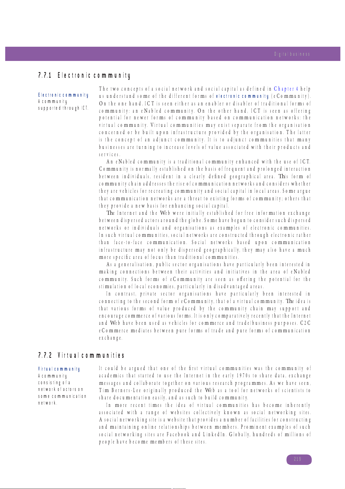 to introduce the idea of an electronic community. Figure 7.16 C2C eCommerce 218 Digital business 7.7.1 Electronic community