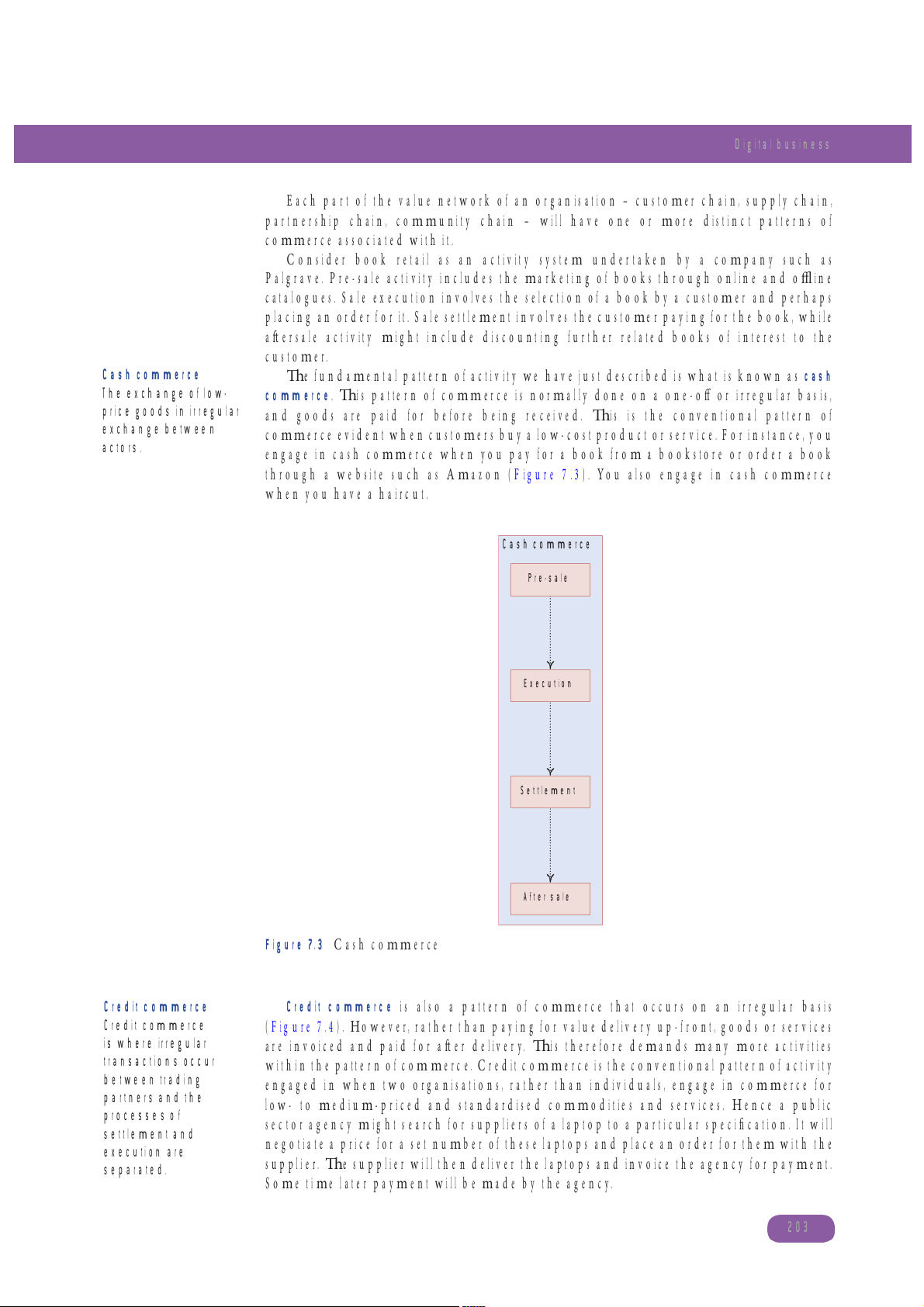 through a website such as Amazon (Figure7.3). You also engage in cash commerce when you have a haircut. Cash commerce Pre-sale Execution Settlement After sale Figure 7.3 Cash commerce Credit commerce