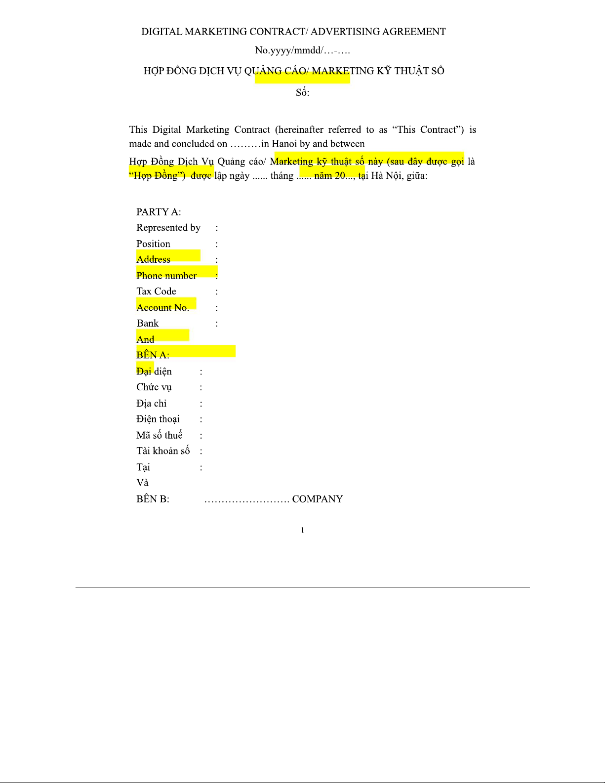 Digital Marketing Contract - Hợp Đồng Dịch Vụ Quảng Cáo