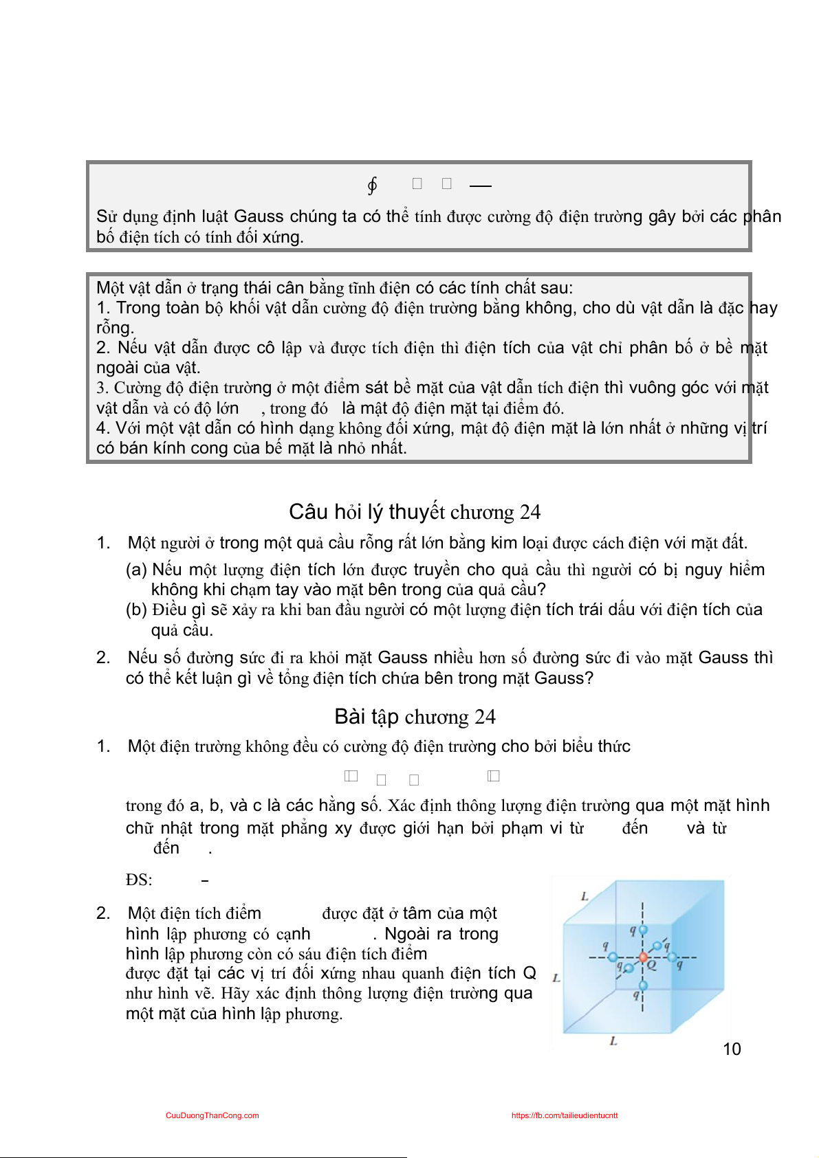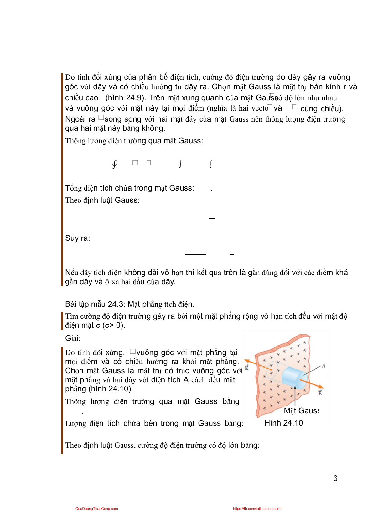 ngoài vật dẫn và thông lượng này bằng . Áp dụng định luật Gauss: ∮ Suy ra: Hình 24.14 cuu duong than cong . com Bài tập mẫu 24.4: