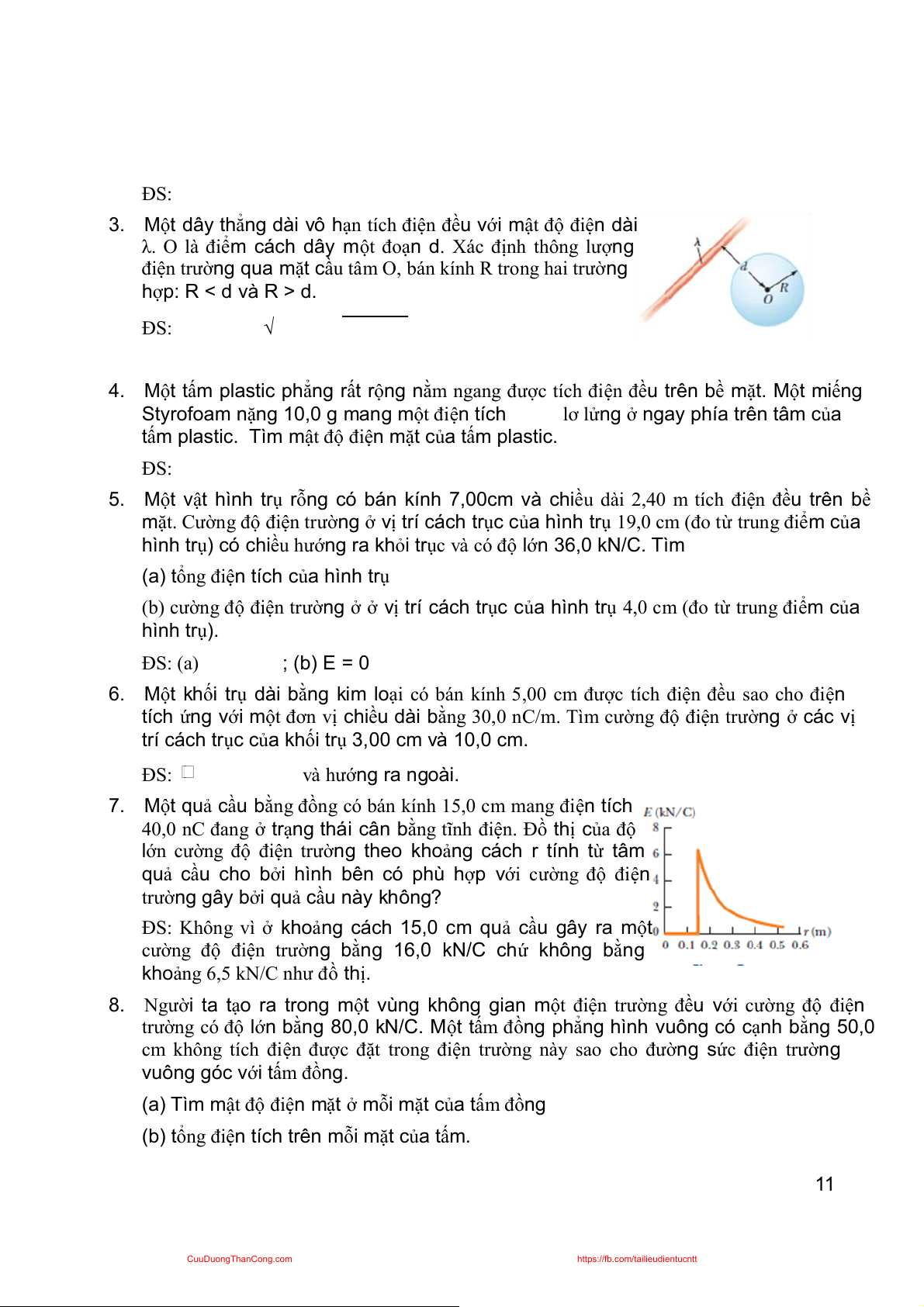 3. Một dây thẳng dài vô hạn tích điện đều với mật độ điện dài