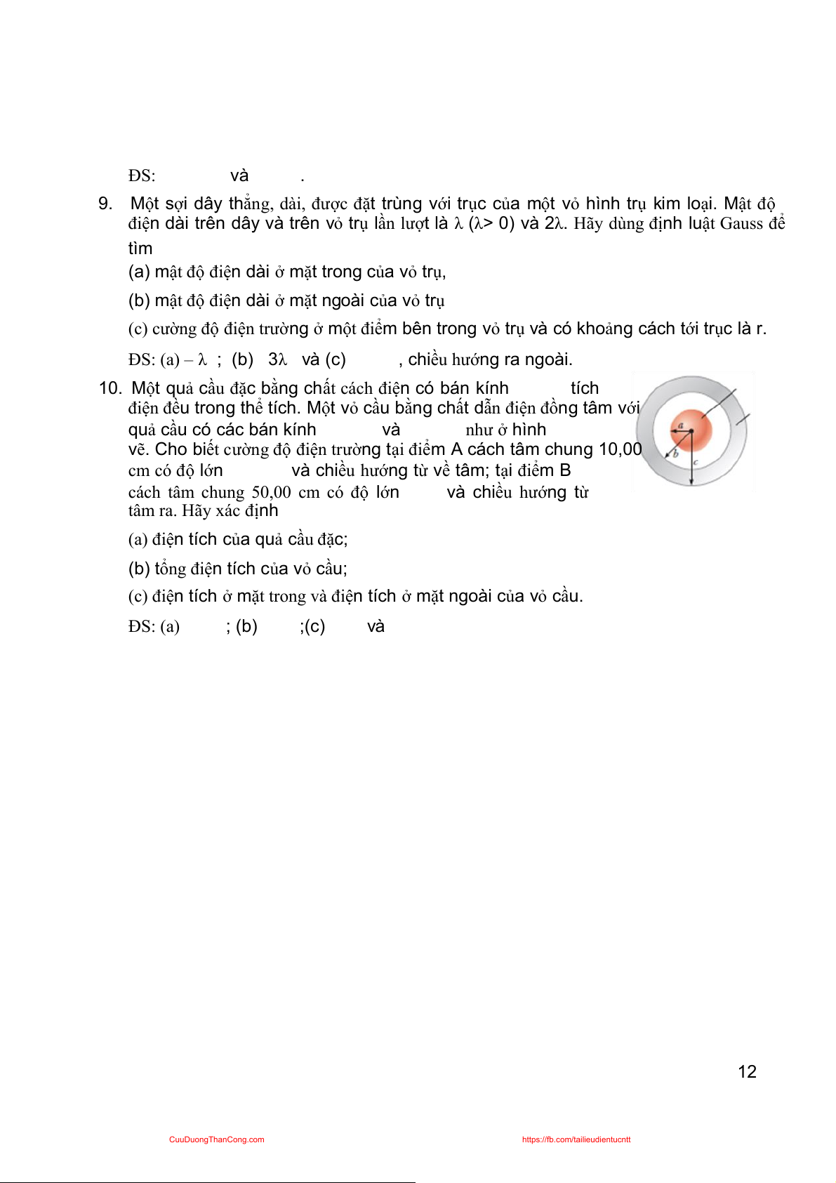 (c) điện tích ở mặt trong và điện tích ở mặt ngoài của vỏ cầu. ĐS: (a) ; (b) ;(c) và cuu duong than cong . com 12 CuuDuongThanCong.com