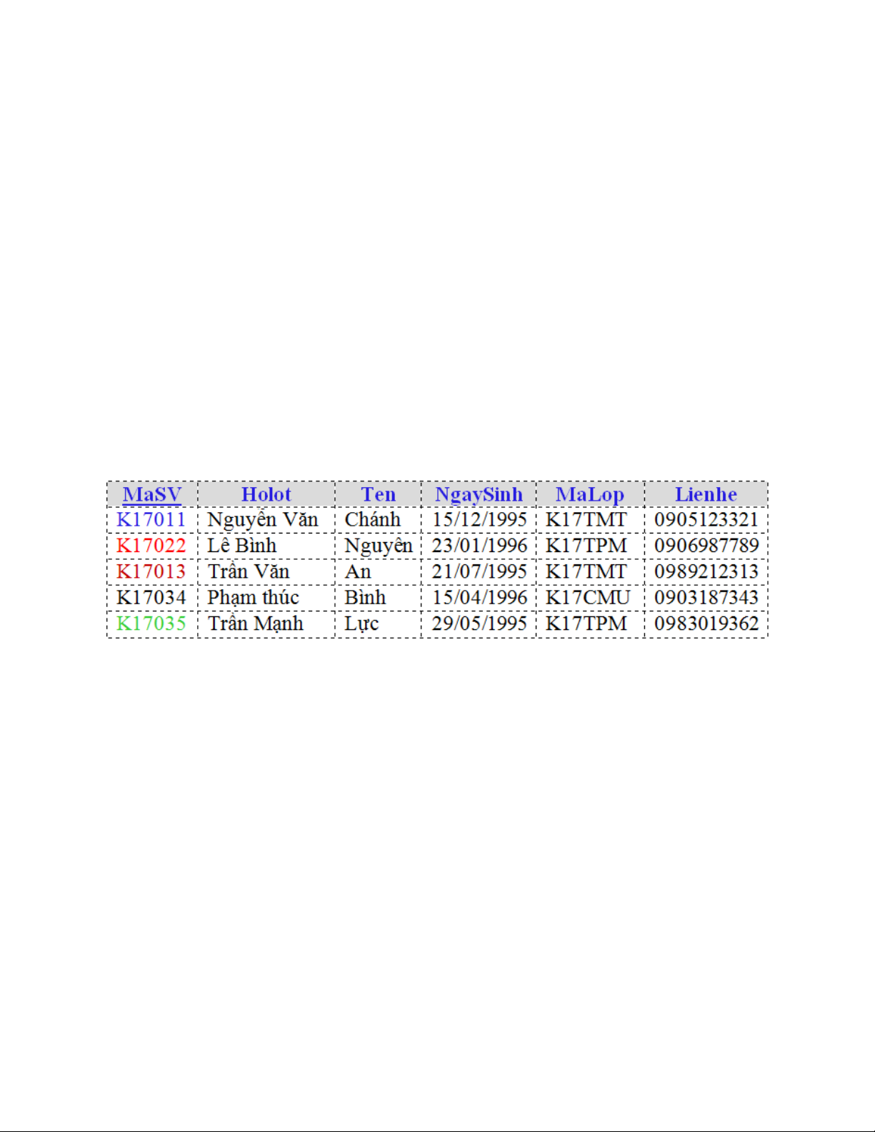 ta hãy xét ví dụ sau: Giả sử cơ sở dữ liệu QLDiemSV có hai table: HSSV và DiemSV như sau: