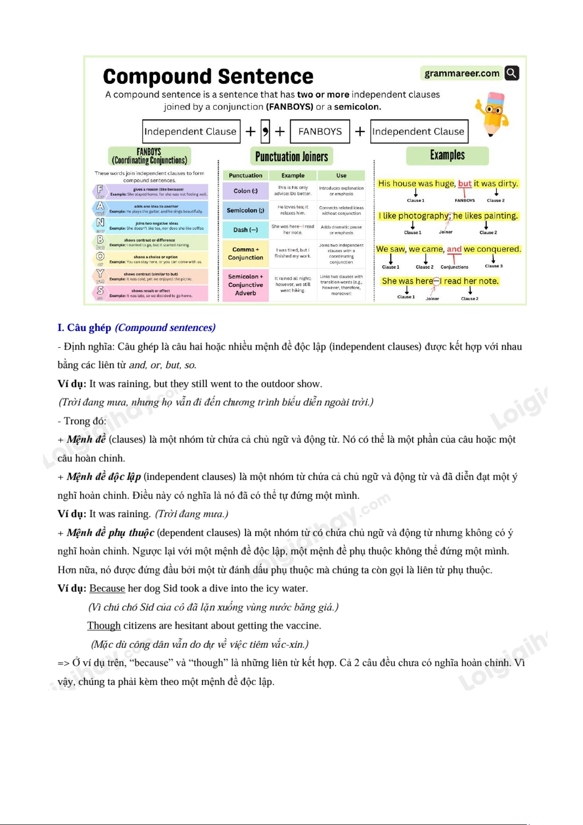 Câu ghép (compound sentence) là loại câu được hình thành từ hai hay nhiều mệnh đề