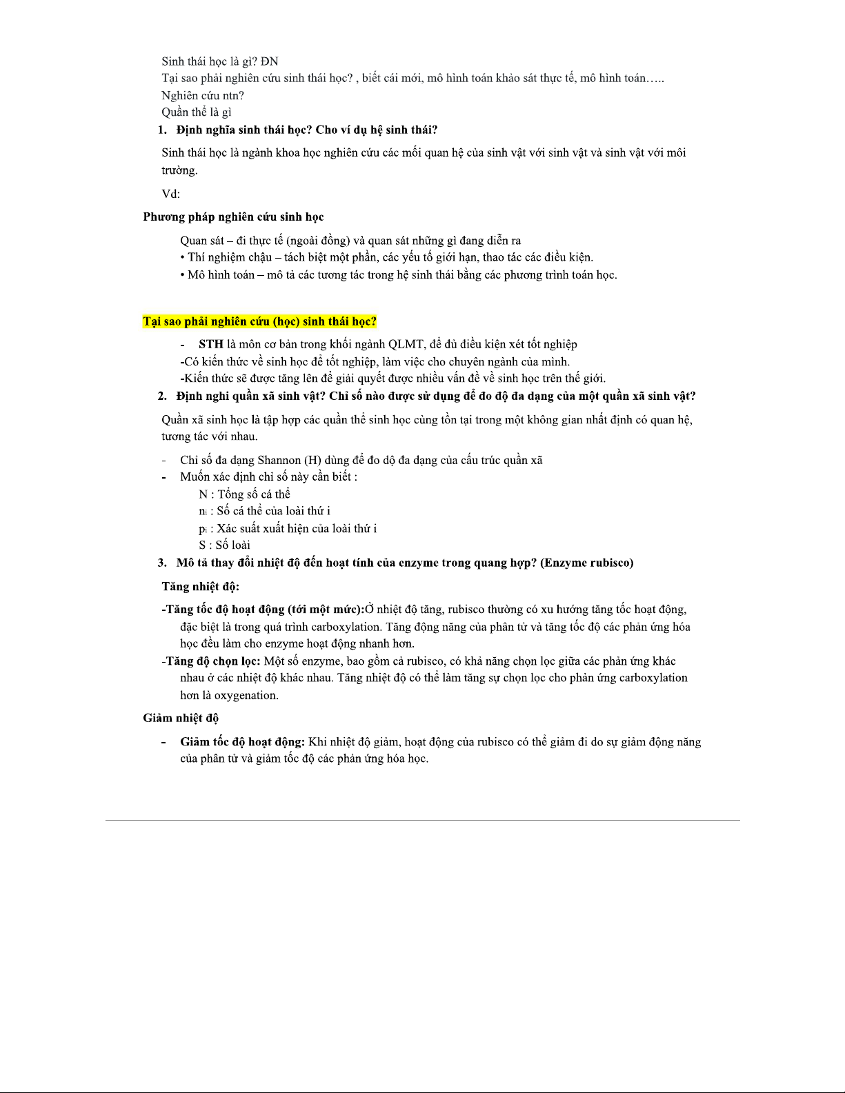 Định Nghĩa và Phương Pháp Nghiên Cứu Sinh Thái Học (STH102)